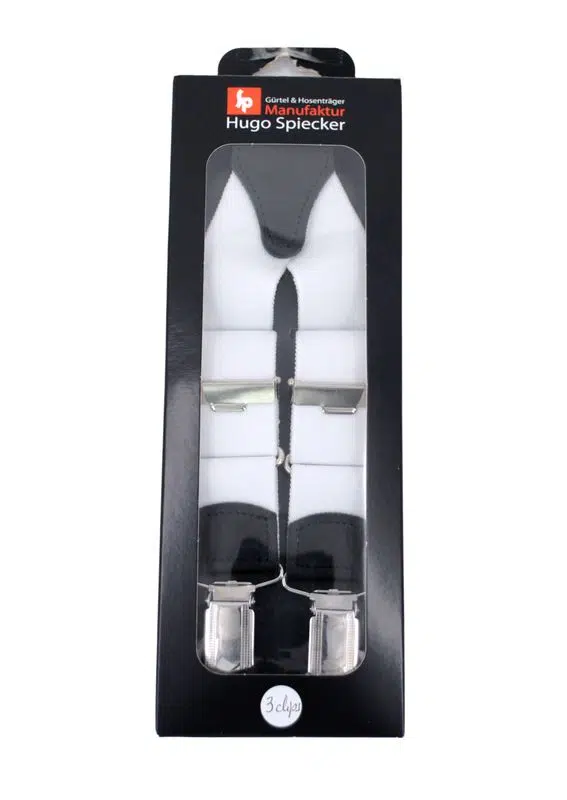 Bretelles blanches en 3 clips et embouts cuir par HUGO SPIECKER