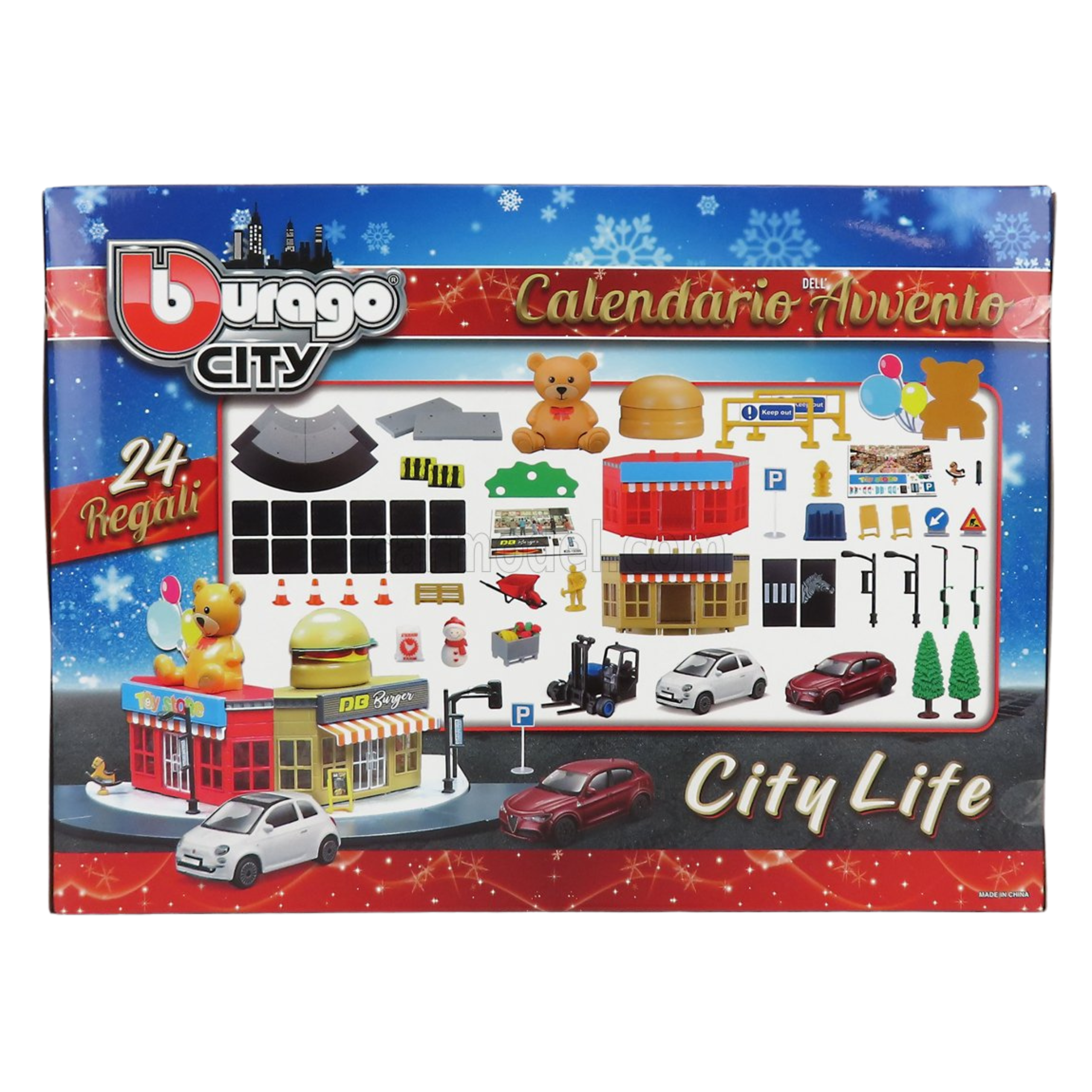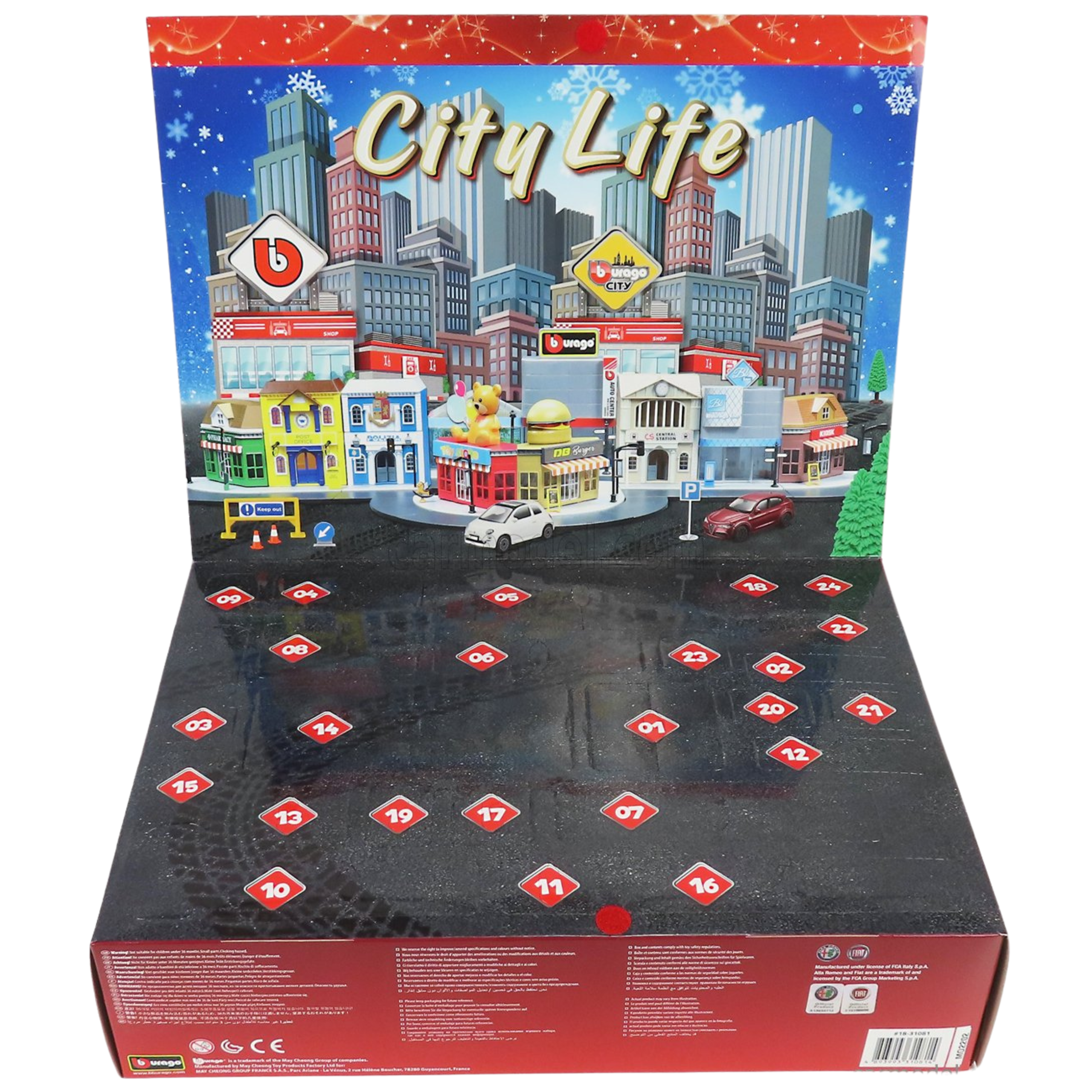 Chaque jour, du 1er au 24 décembre, découvrez une nouvelle pièce ou accessoire pour construire un univers miniature autour des célèbres véhicules BURAGO.