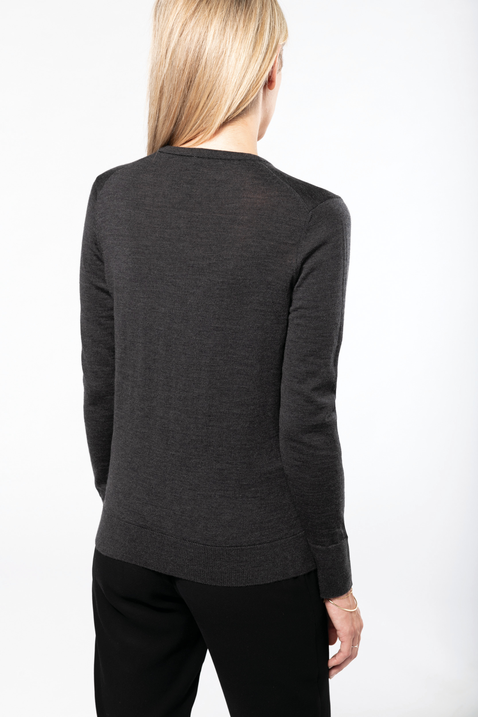 100% laine extra fine pré-rétrécie. Traitement spécial pour encore plus de douceur. Matière chaude et agréable. Encolure en V et boutons ton sur ton. Bord-côte 1×1 doublé à l’encolure et milieu devant et simple aux bas de manches et de vêtement.