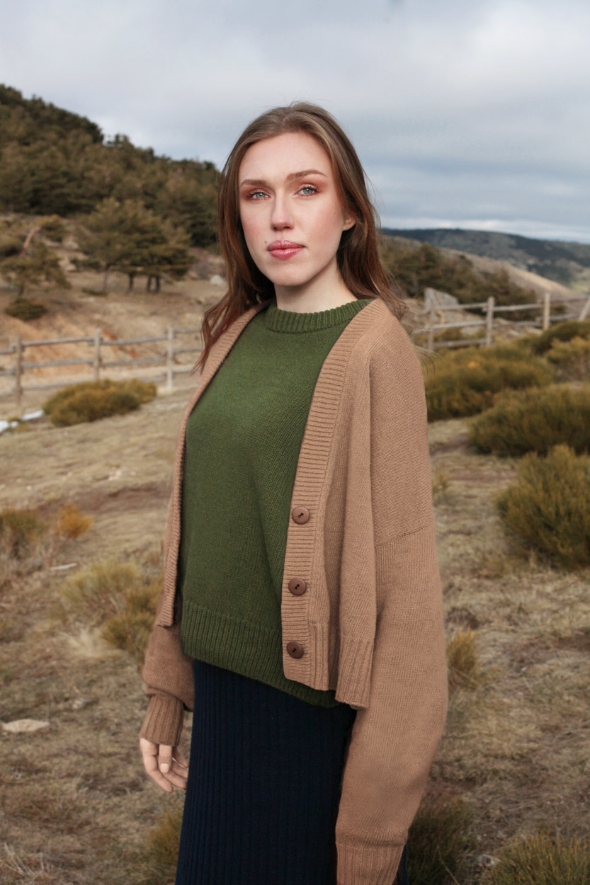 Para este cardigán hemos seleccionado un cachemir proveniente de una de las más lujosas hilaturas de Italia. Se trata de un cachemir premium con certificación Global Recycle Standard (GRS), lo que garantiza una calidad reciclada trazable y respetuosa del medio ambiente.