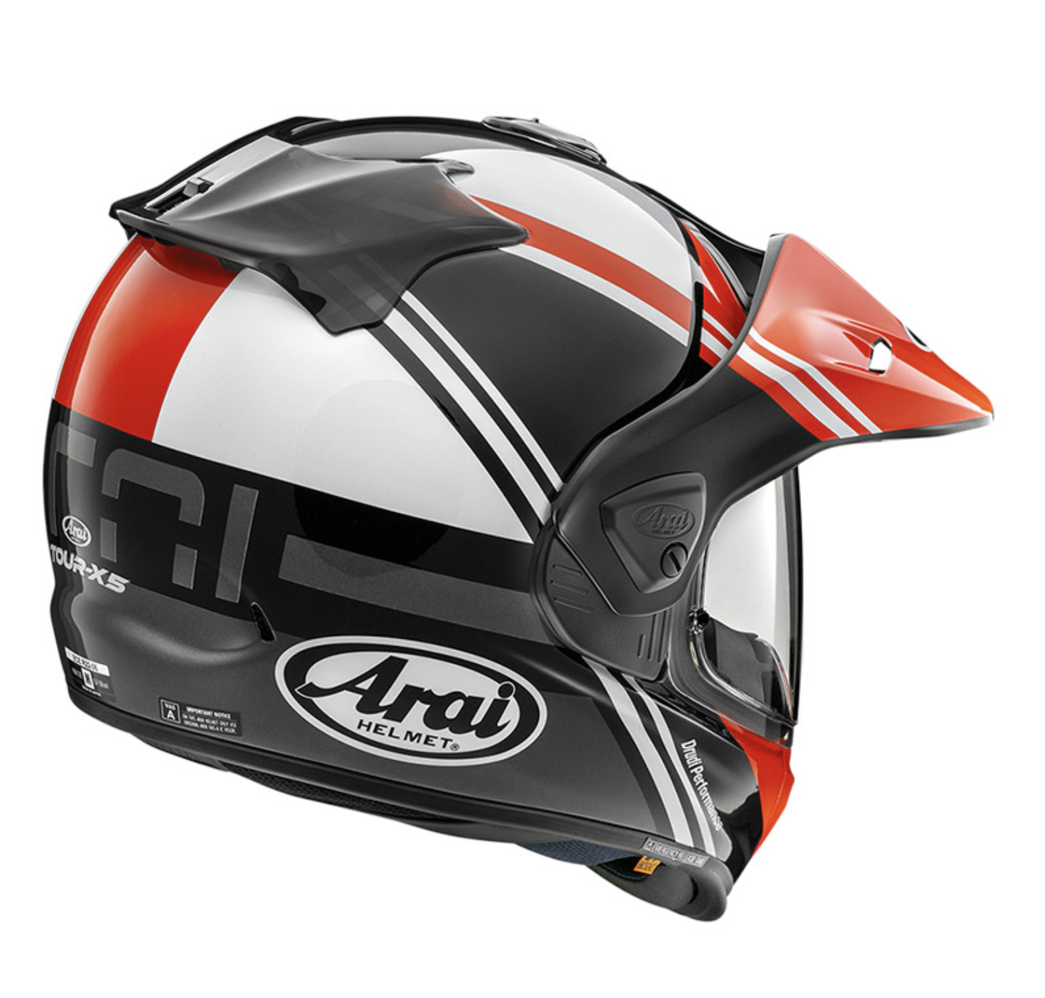 L’un des plus grands changements concerne le système d’écran et sa visière. Le nouveau système d’écran VAS-A, dérivé du système VAS-V développé pour le RX-7V, a été conçu pour maximiser les performances de déviation (Glancing-off), offrant plus de surface pour dévier l’énergie des impacts, tout en permettant une installation et un retrait faciles de l’écran et de la visière. L’écran Max Vision a été redessiné pour augmenter la visibilité, permettant ainsi une installation facile d’un insert Pinlock. Le nouveau système VAS-A facilite également le changement de l’écran, sans outils, pour passer d’un style de ride à un autre. Vous pouvez choisir entre Aventure, Tout-terrain et Route. Le Tour-X5 présente un tout nouveau système de ventilation. Il est le deuxième casque à intégrer le conduit dans le logo ARAI 3D, introduit précédemment sur le Quantic. Complété par le nouveau spoiler AR, le Tour-X5 dispose également d’une toute nouvelle aération au menton. Le système de ventilation du Tour-X5 assurera un flux d’air ample pour vous garder au frais, quelle que soit la situation. De plus, la grille de ventilation intérieure peut diriger l’air vers la bouche ou la visière pour augmenter la désembuage.