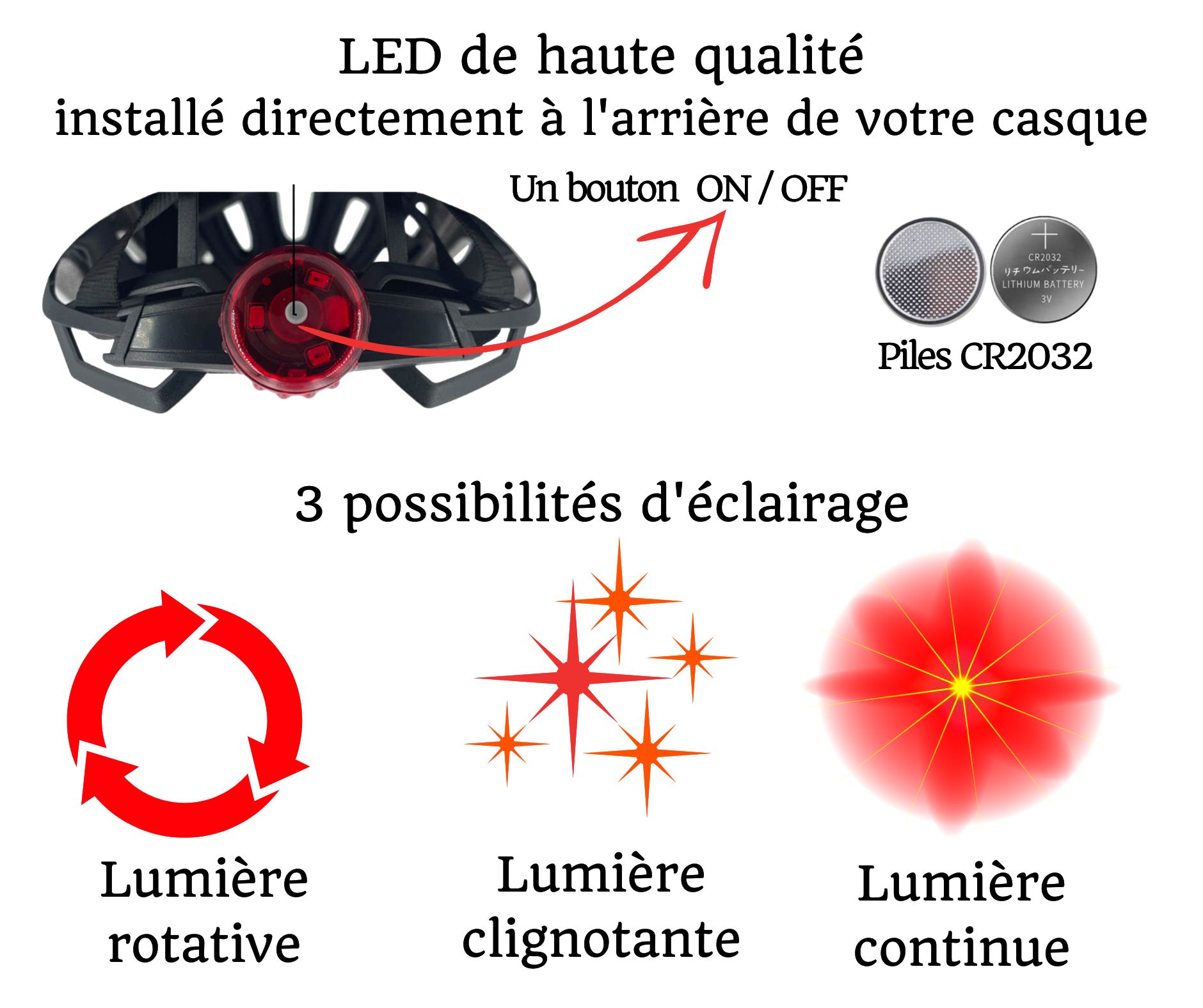 Découvrez les différentes positions de lumière LED sur le Casque Vémars