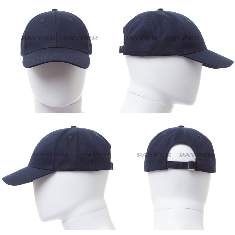 Casquette unisexe 6 panneaux, en twill de coton, avec visière pré-incurvée, boutonnières brodées et fermeture réglable avec boucle.