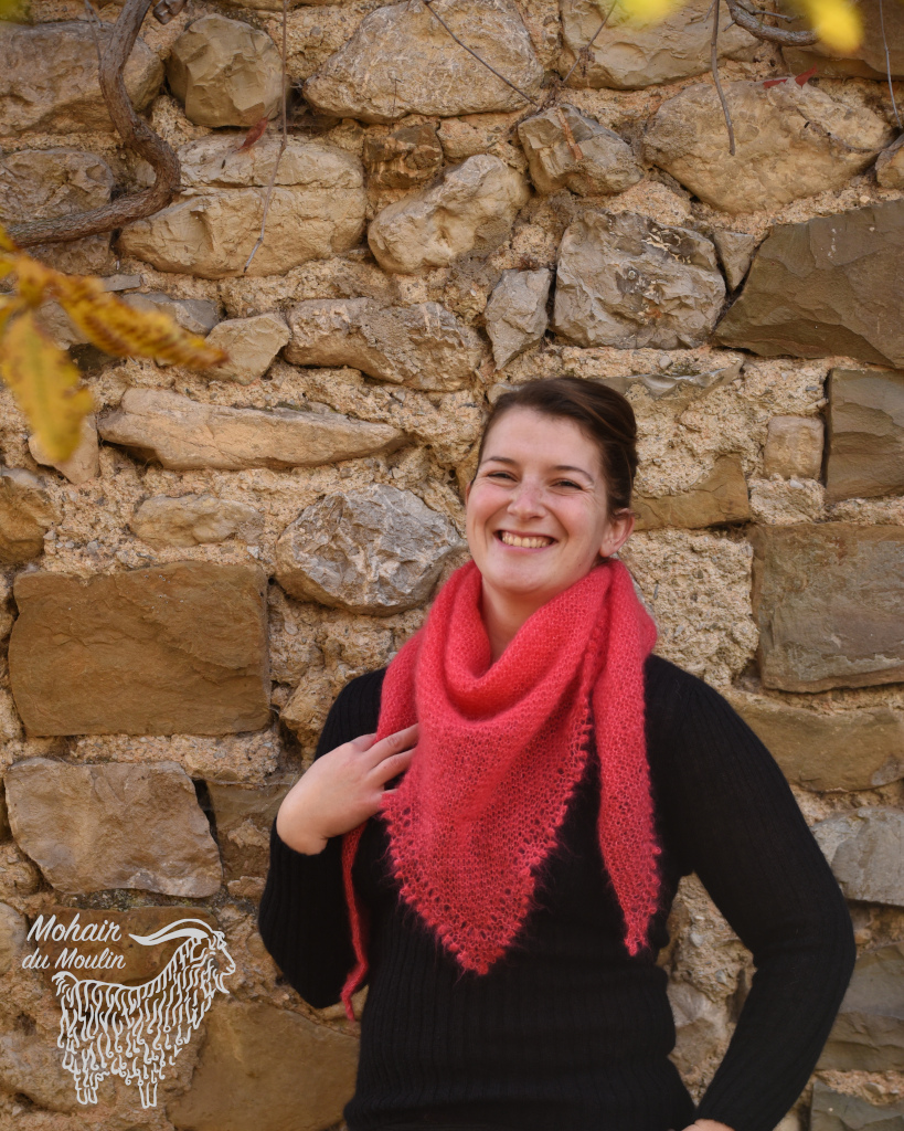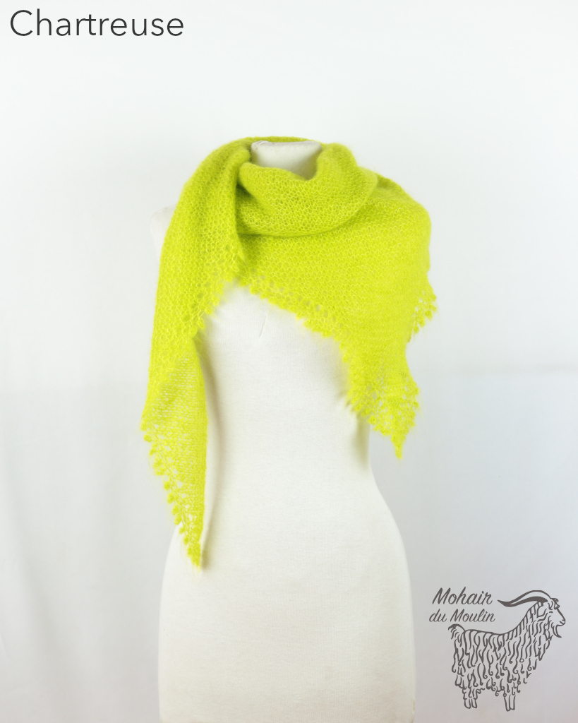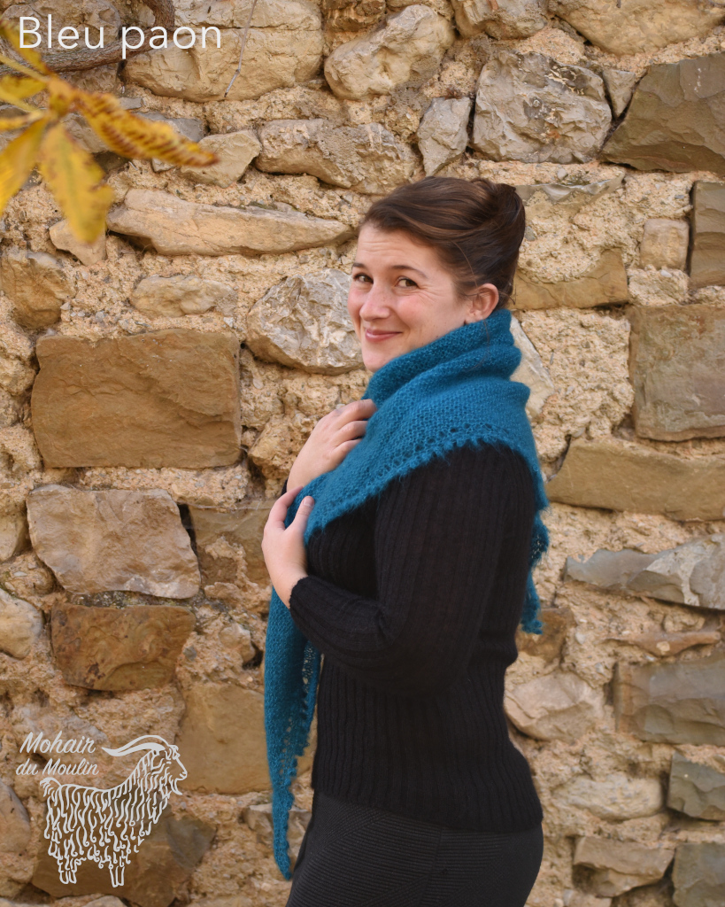 Le châle Cévennes mohair est une pointe, à porter soit en châle, soit en chèche (avec la pointe devant).
