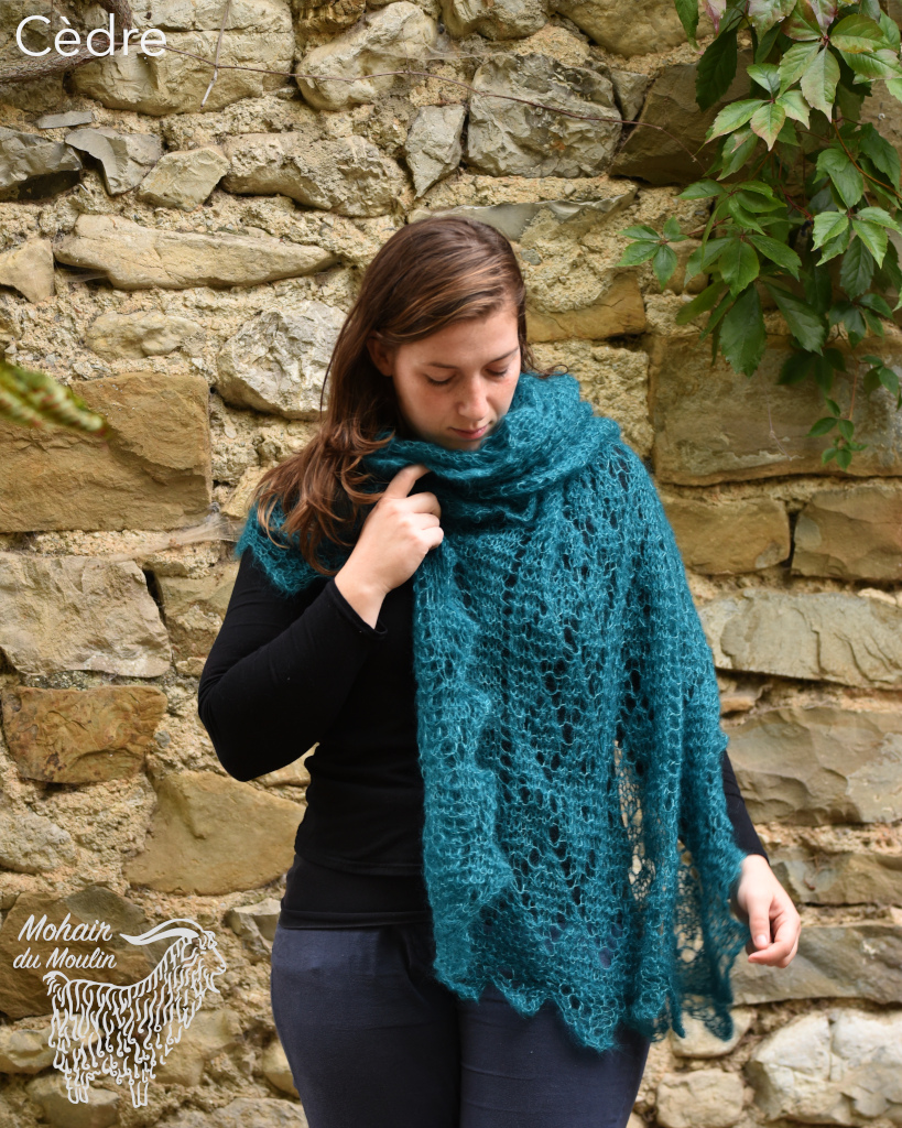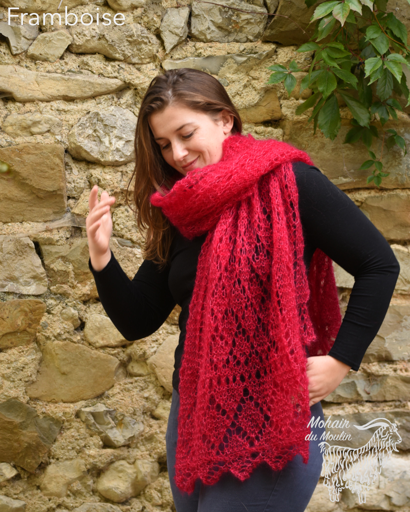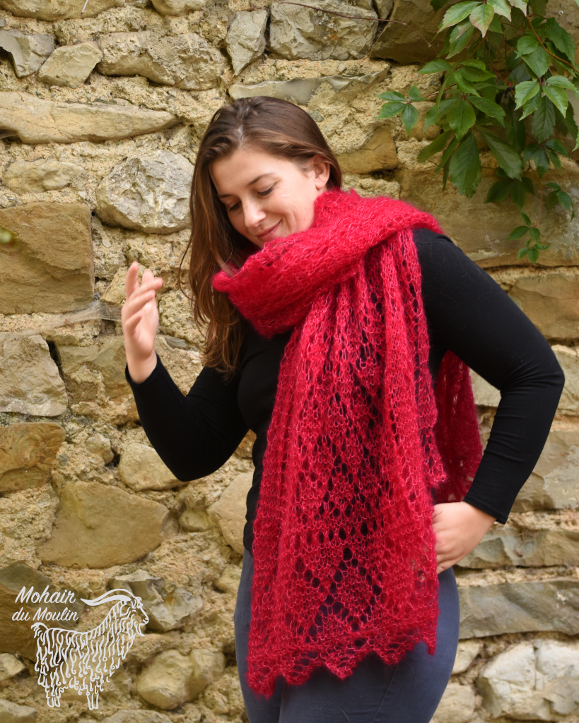 Le châle Russe mohair est un tricot main très original… Traditionnellement, les tricoteuses des pays de l’Est sont capables de faire de grands point ajourés comme ceux-ci avec des aiguilles n° 4 ! À chaque maille, elles tirent le fil de manière très régulière, pour créer le jour. Ouf, nous avons transcrit le modèle pour le faire en aiguilles n° 10…