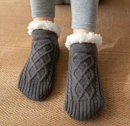 Chaussettes courtes antidérapantes en coton de couleur gris avec fourrure (T.35 à 39)