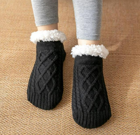 Chaussettes courtes antidérapantes en coton de couleur noire avec fourrure (35 à 39)