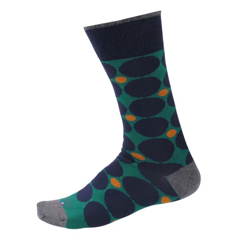 Chaussettes homme coton fantaisie rond marine sur fond vert LABONAL