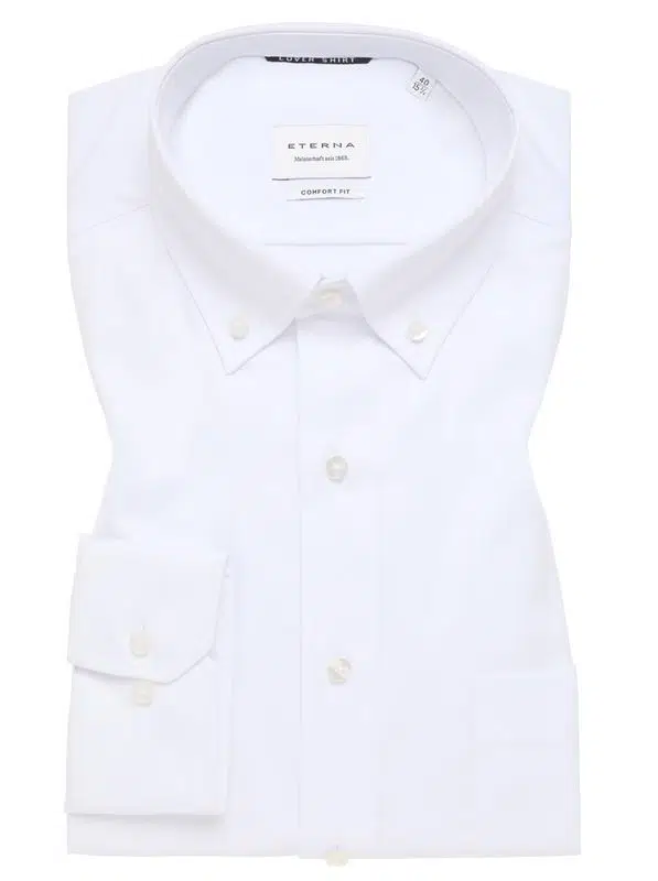 Si vous cherchez une chemise blanche au col boutonné alors vous serez séduit par cette chemise ETERNA. Cette chemise est en coupe COMFORT FIT, une coupe très large. Une chemise 100% coton avec une belle opacité. Ce coton lisse est sans repassage.