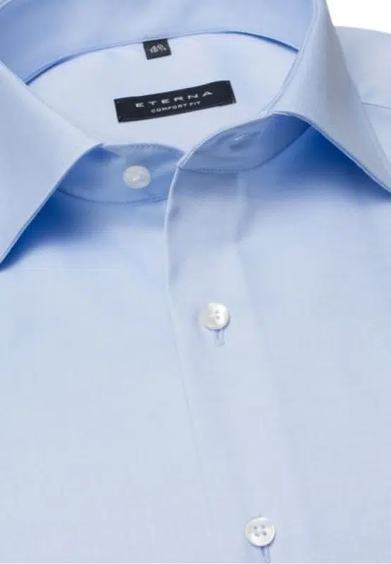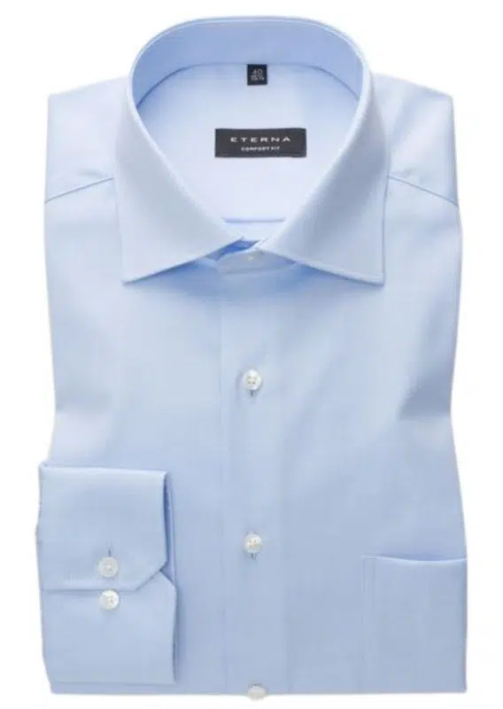 Chemise bleu ciel 100% coton, sans repassage. Chemise dite « opaque » grâce a un coton toutes saisons plus épais pour réduire la transparence