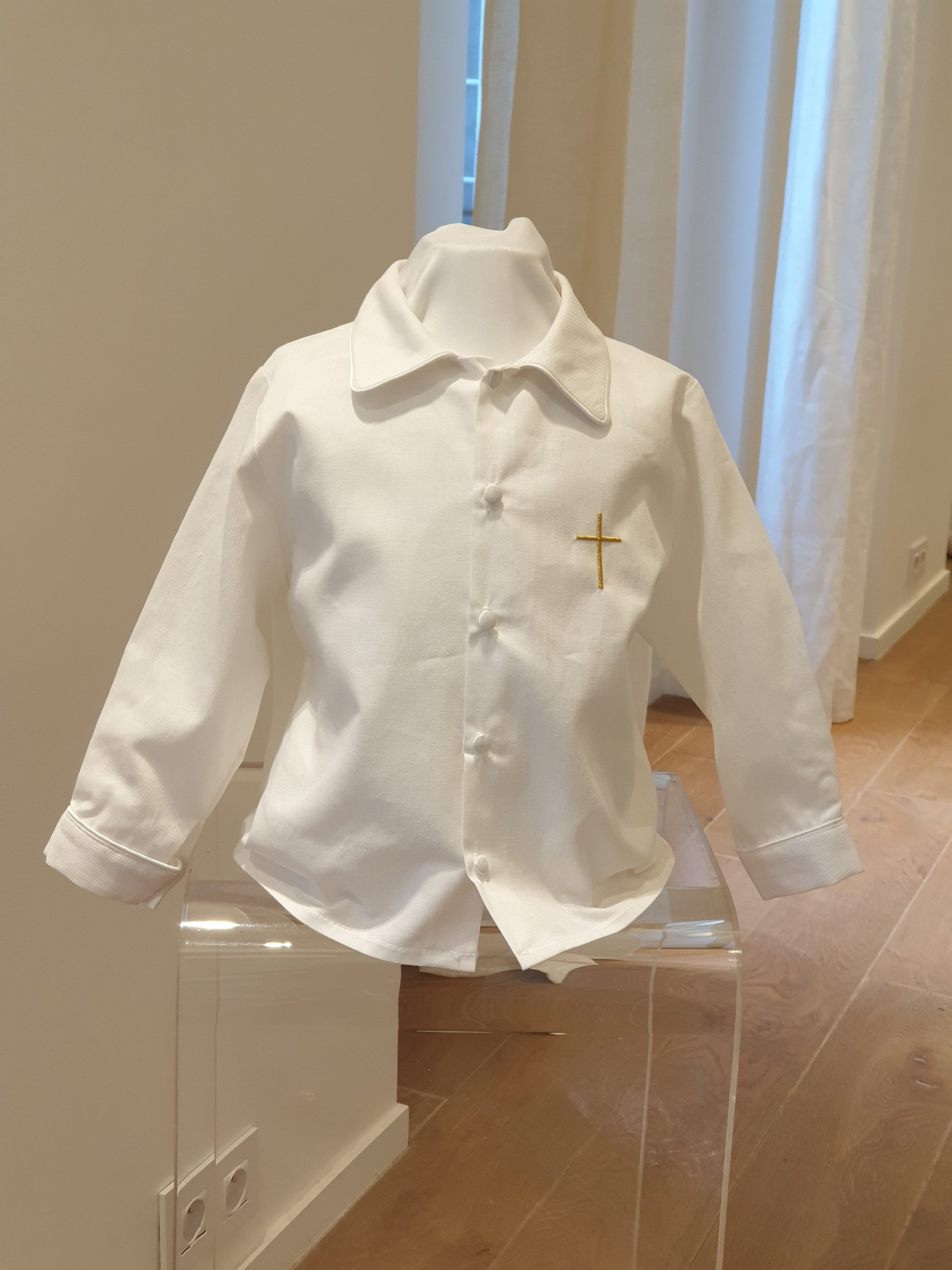 chemise de bapteme avec croix 40 euro chemise en pique de coton blanc bordé blanc avec croix brodée doré