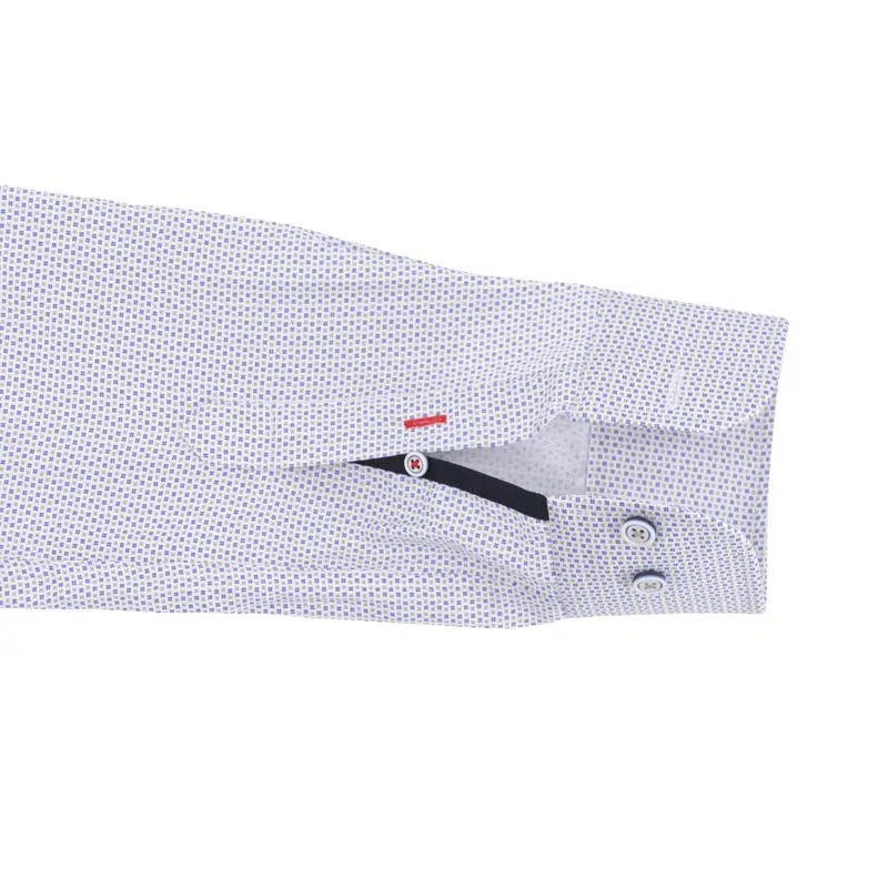 La marque espagnole TFE SURFCAR propose cette chemise à l’imprimé discret bleu et vert. Une chemise à porter pour le quotidien ou une occasion décontracté chic avec un élégant pantalon marine par exemple. Vous apprécierez le coton léger, fluide et doux. Le boutonnage du col se fait sans le col.