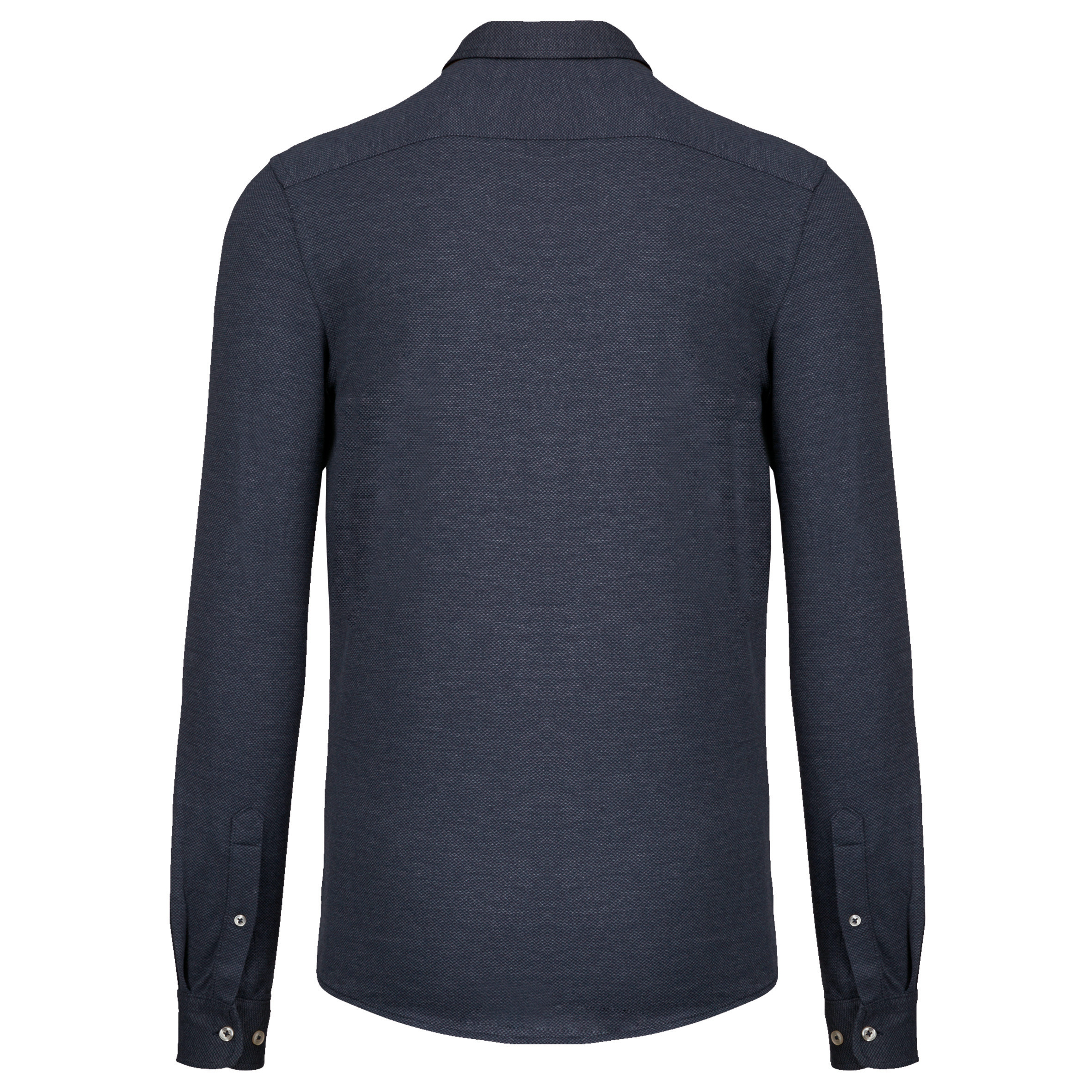 68% coton / 32% polyester. Maille jacquard. Pied de col en suédine contrasté. Look moderne. Matière confortable et douce. Patte de boutonnage classique avec boutons imitation nacre. Poignets réglables avec boutons imitation nacre. Bas arrondi.