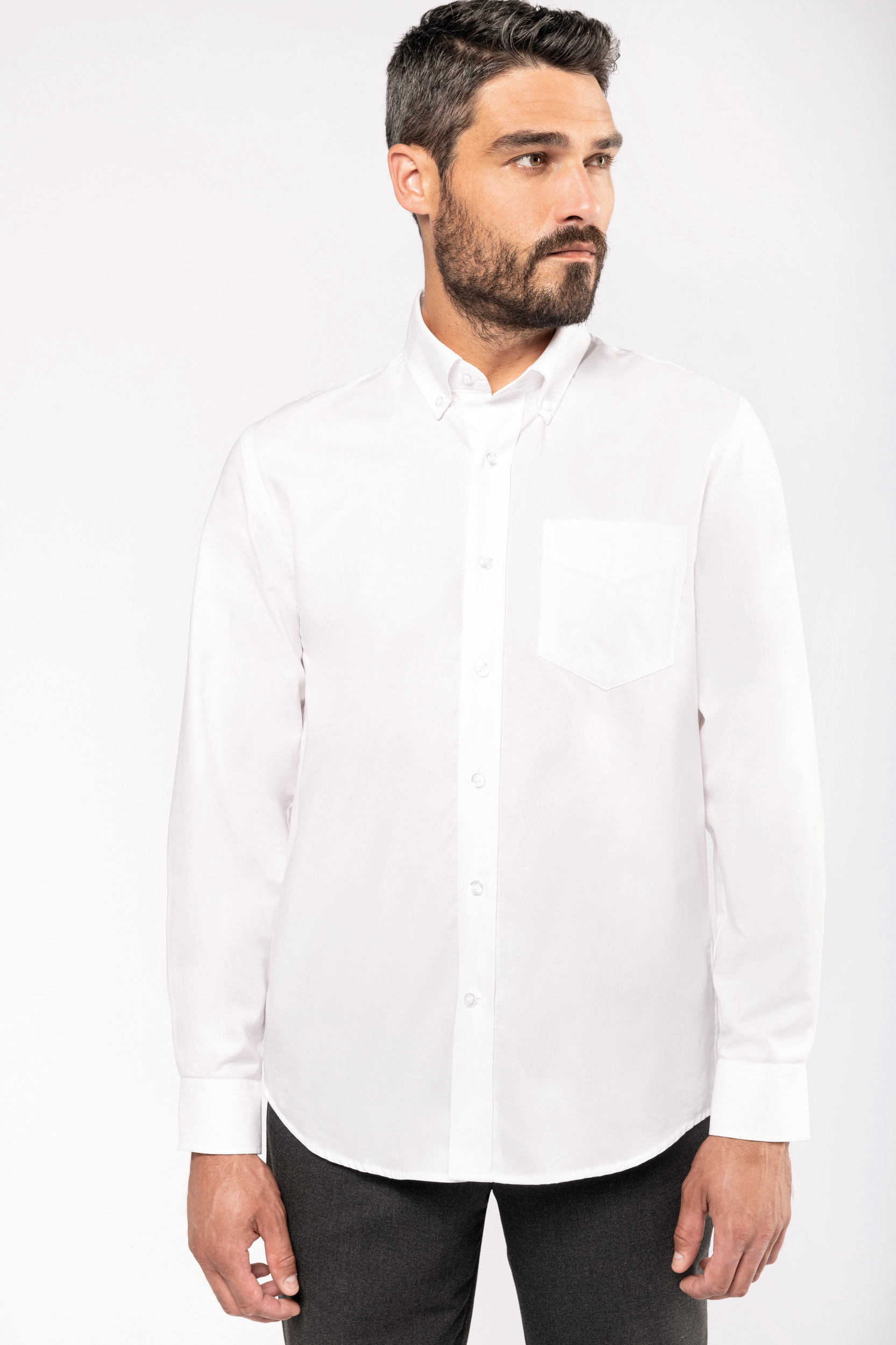 70% coton oxford / 30% polyester. Entretien facile (traitement Easy Care). Pointe de col boutonnée. Boutons ton sur ton. Poche poitrine côté gauche en V. Empiècement dos double avec 2 plis d’aisance. Poignet réglable à angles arrondis avec patte de manche capucin boutonnée. 2 boutons de rappel. Bas arrondi.