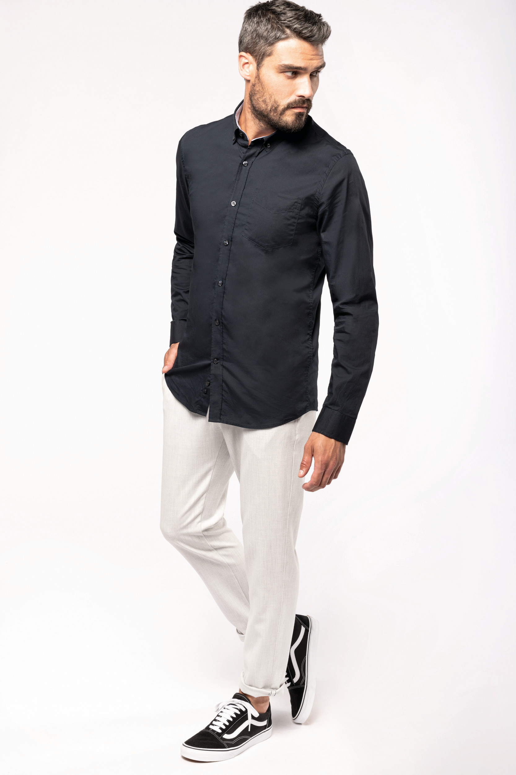 Chemise popeline lavée manches longues