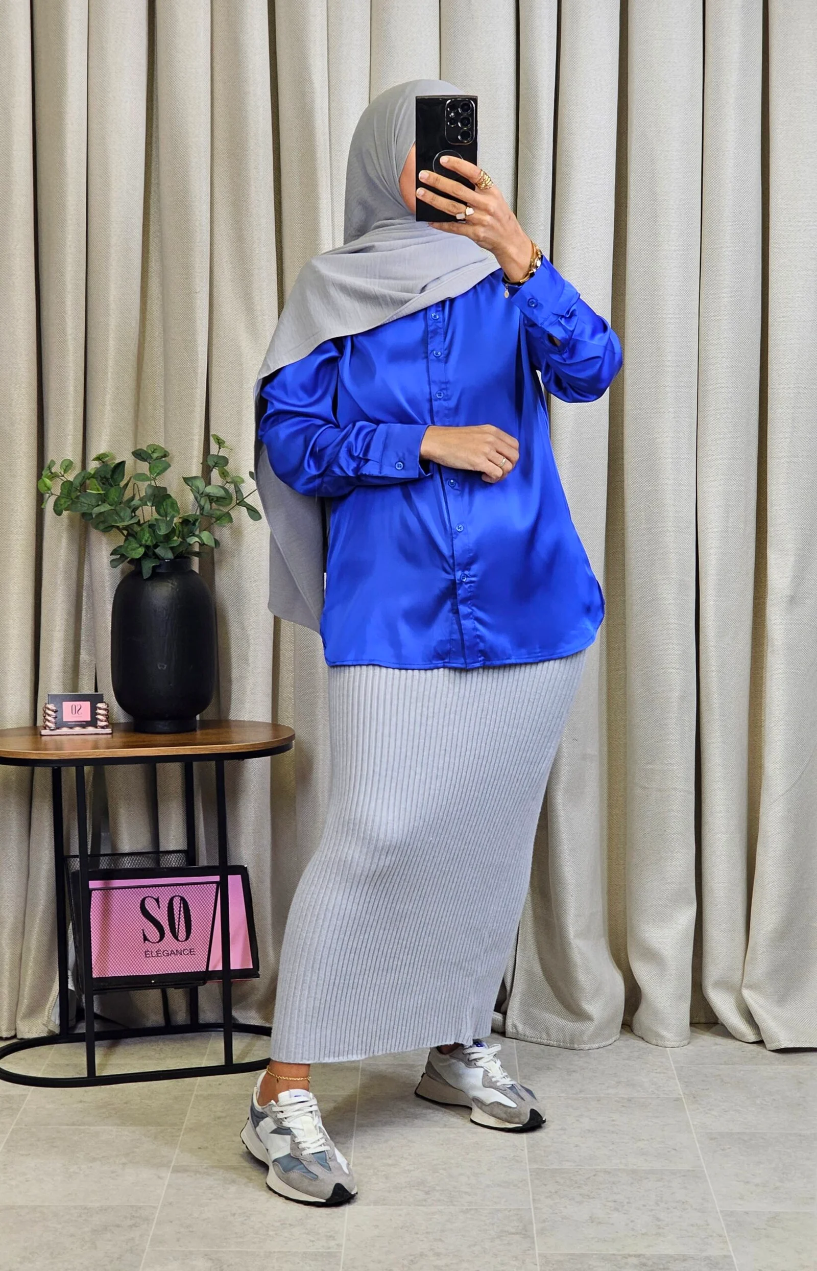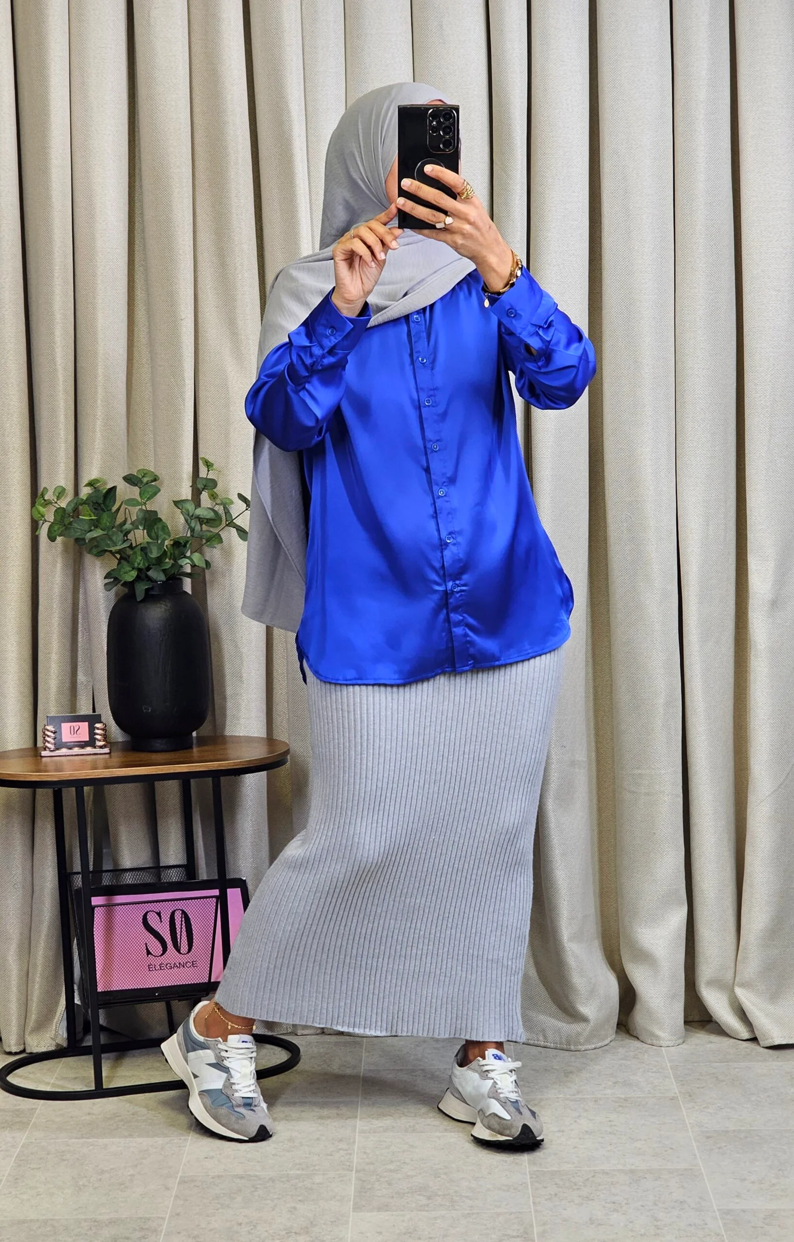 Chemisier satiné bleu roi