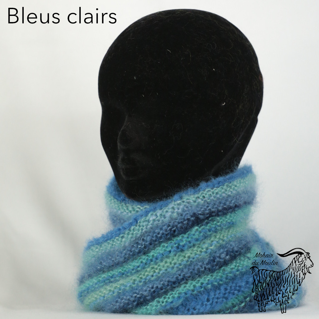 Ceci est le mohair de nos chèvres. Nous le faisons transformer (lavage, filature, teinture) par le biais d’un groupement d’une trentaine d’éleveurs. Nous nous sommes regroupés derrière le logo « Mohair de nos chèvres ». Pour en savoir plus, rendez vous sur le site: mohair.pro.