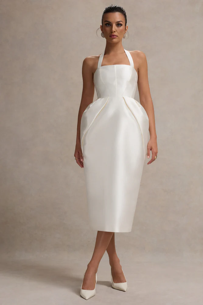 Cosetta – Robe Mi-Longue Blanche à Col Halter avec Jupe Tulipe
