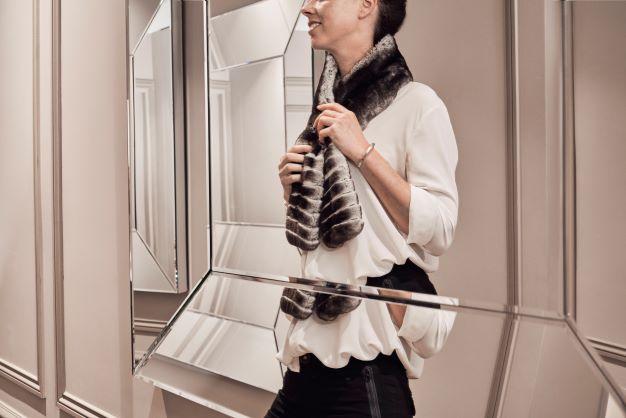 Notre écharpe en fourrure d’Orylag bicolore est un classique de la maison.