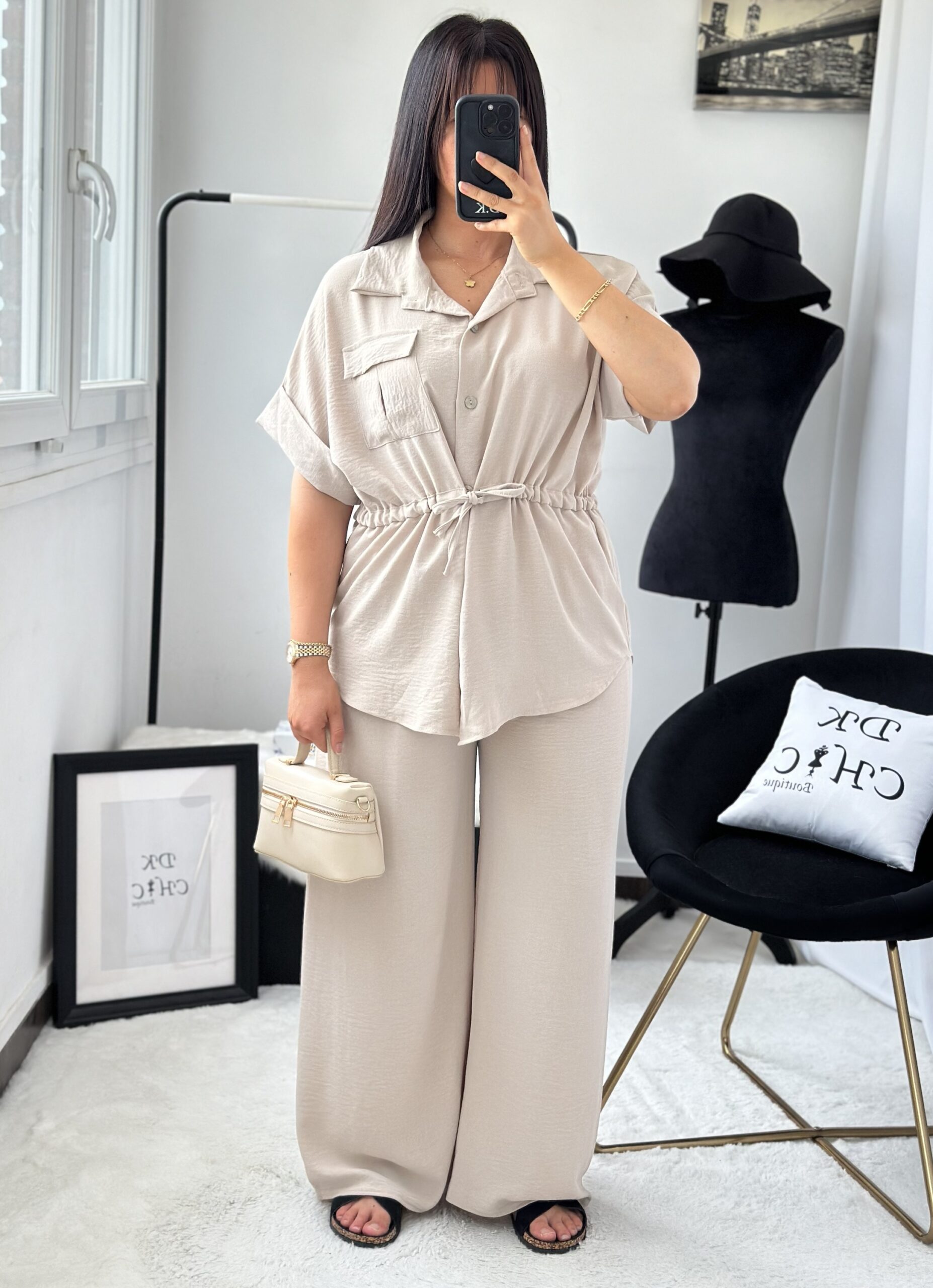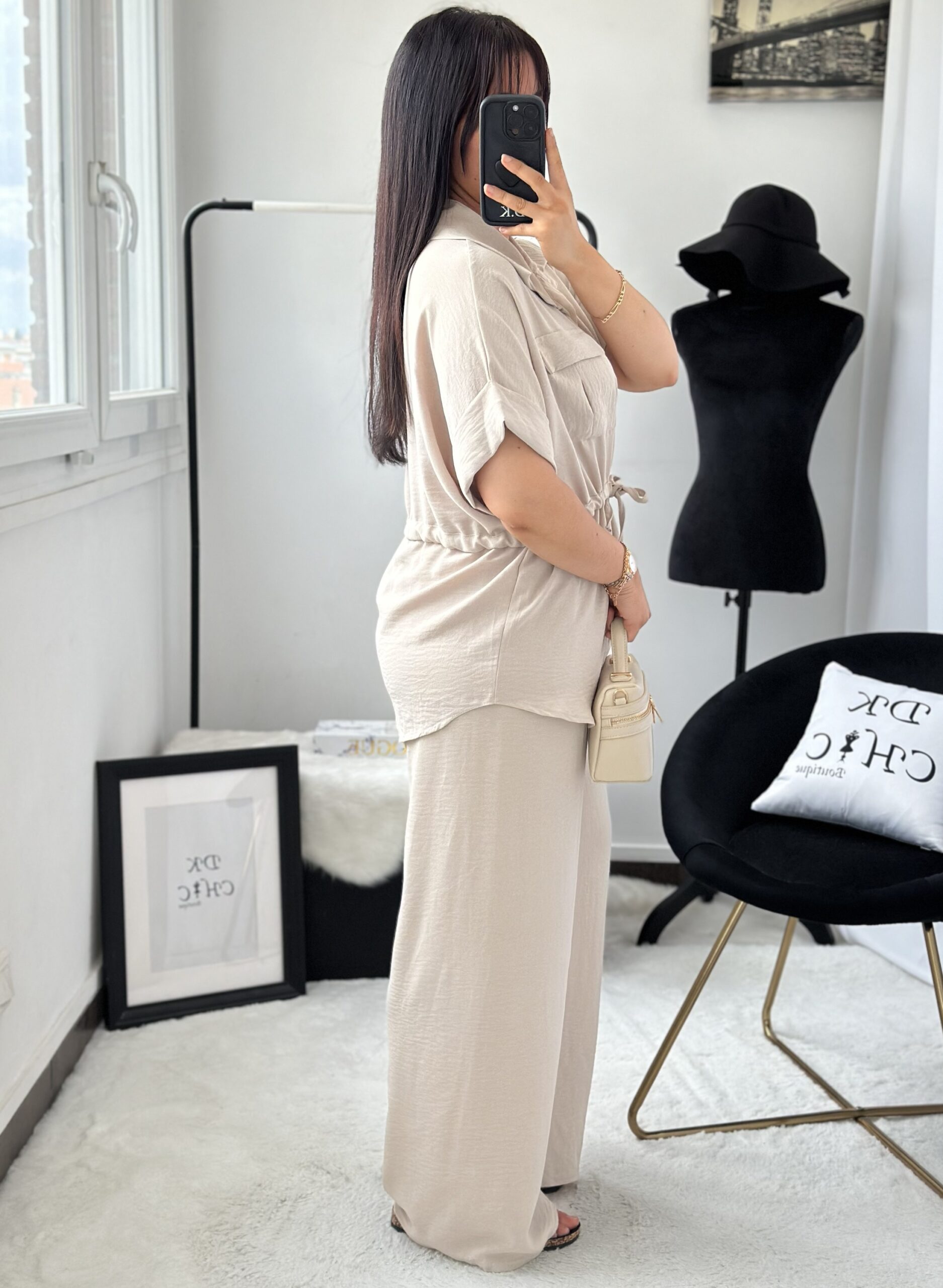 Ensemble Chemise à manches courtes et Pantalon Beige LINA