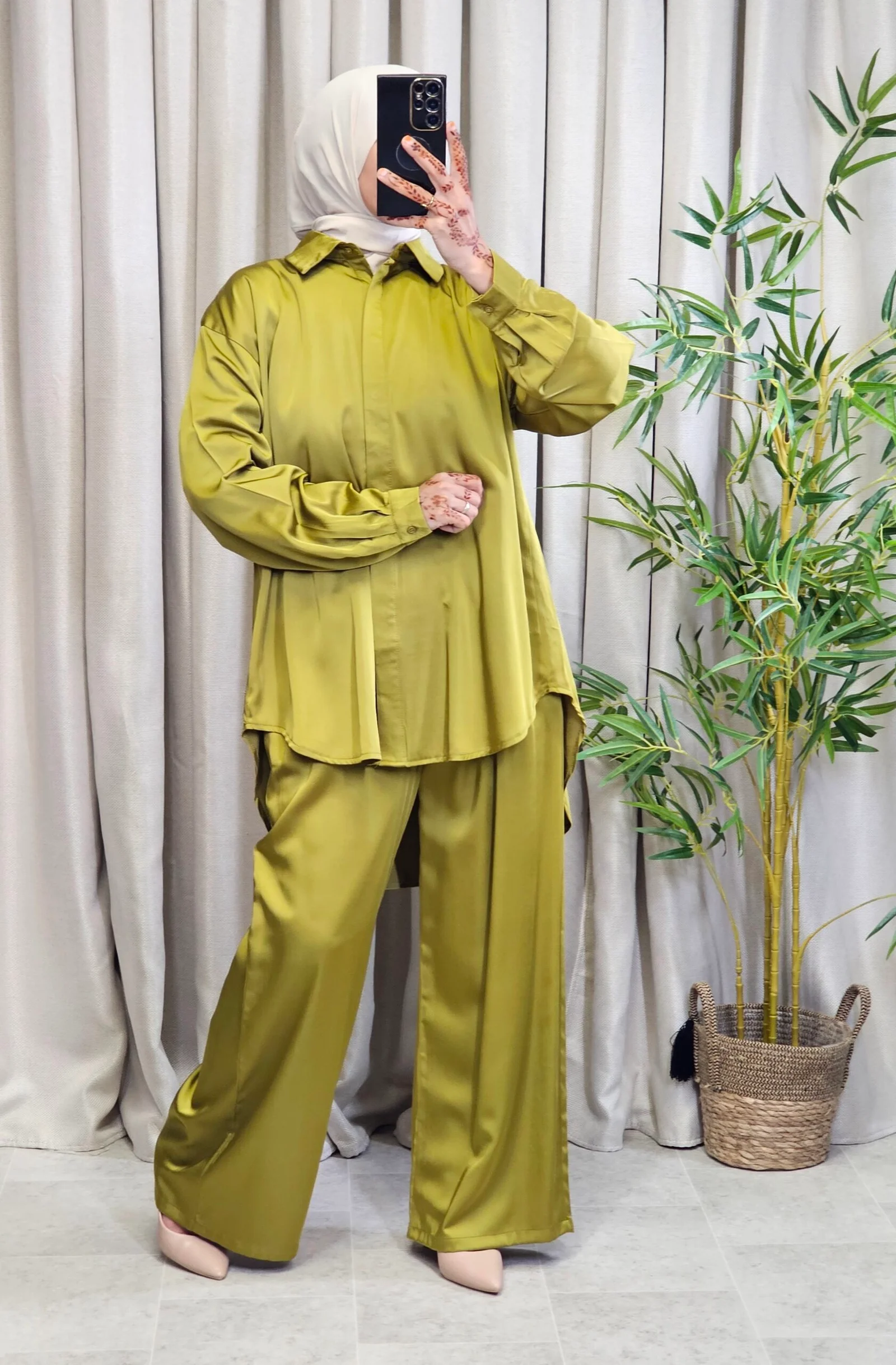 Ensemble chemise satiné vert tilleuil