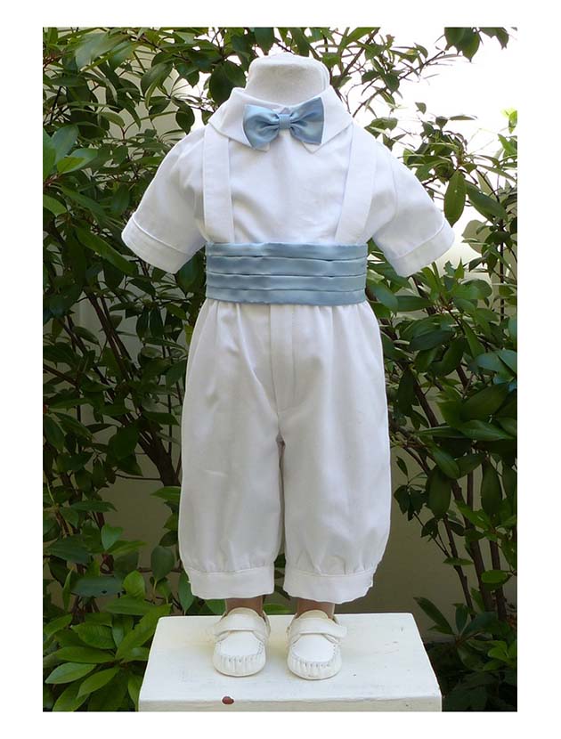 Knicker + chemisette piquée de coton + ceinture satin ciel