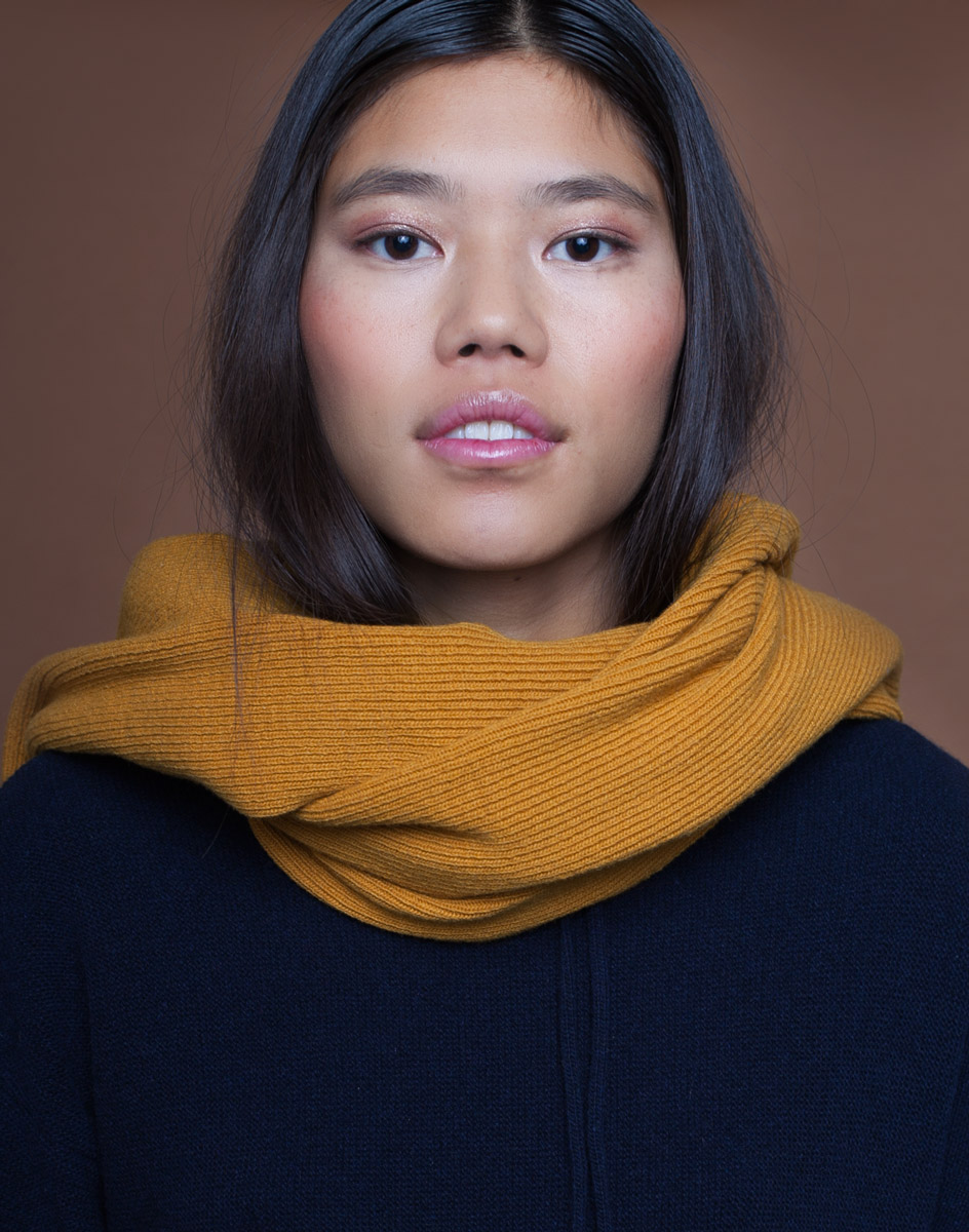 Florenz minimalist designs combine elevated finishing and quality to achieve maximum simplicity with a very clean and uncomplicated look. This saffron unisex scarf is perfect layered over a simple sweater or wrapped over the shoulders.
