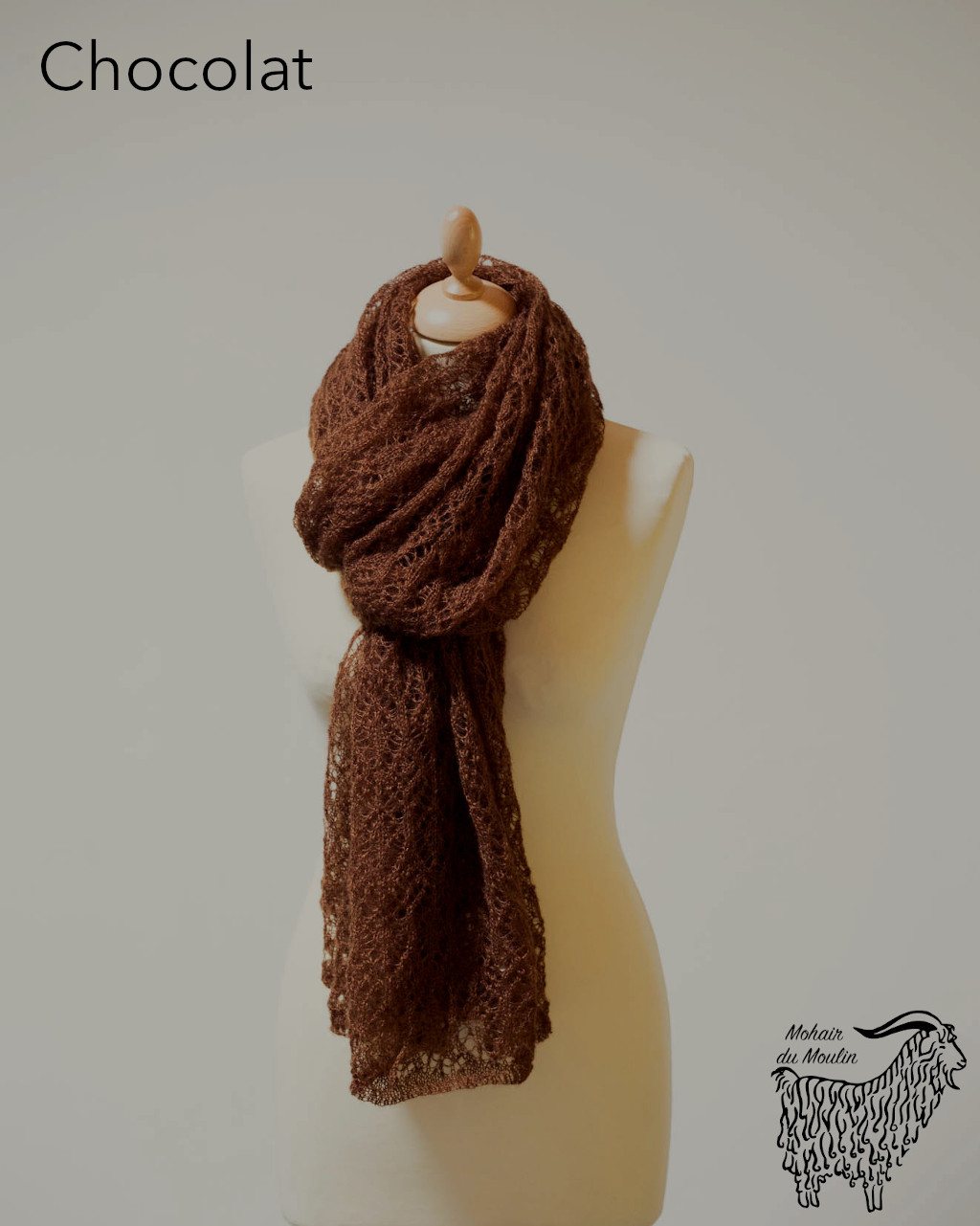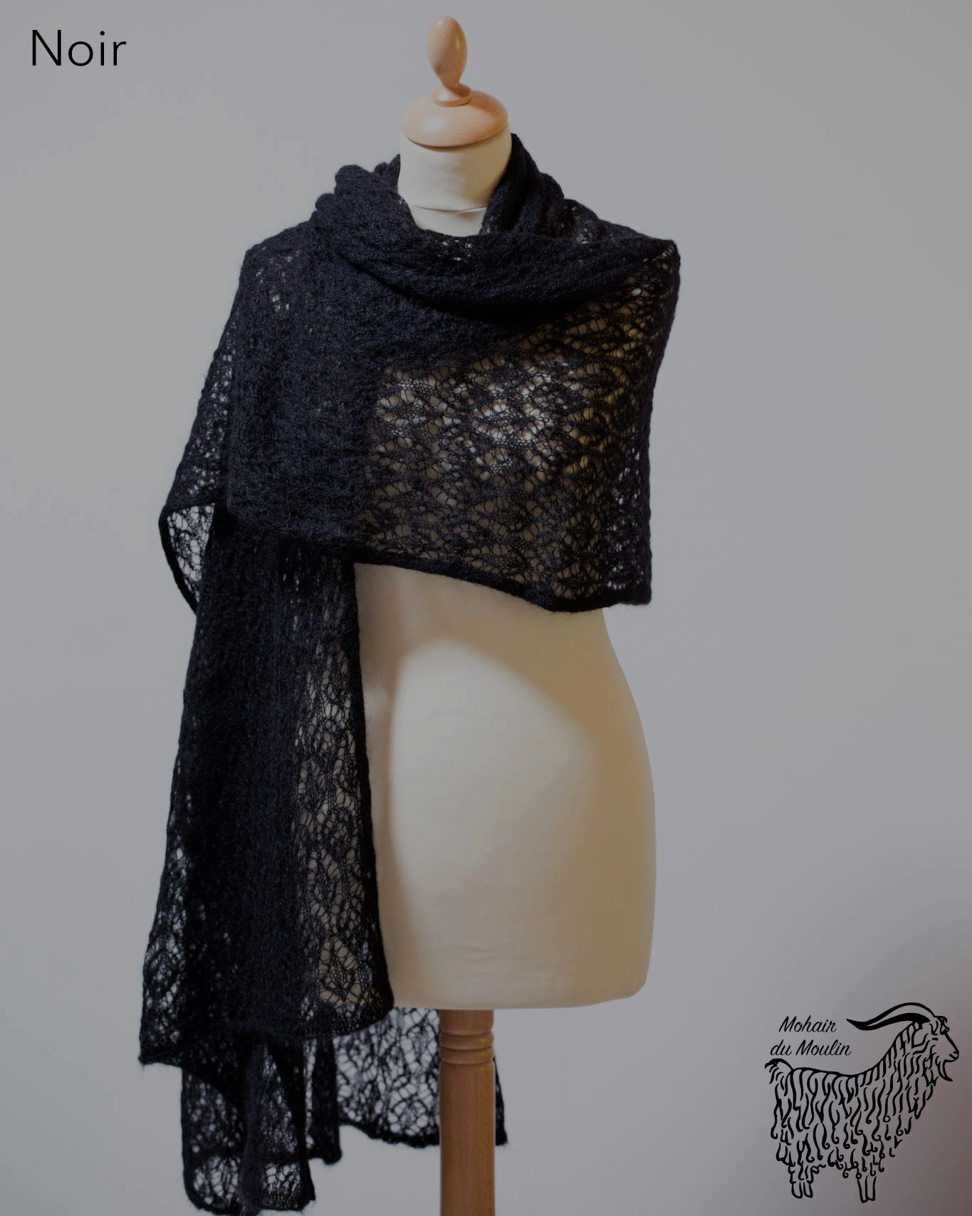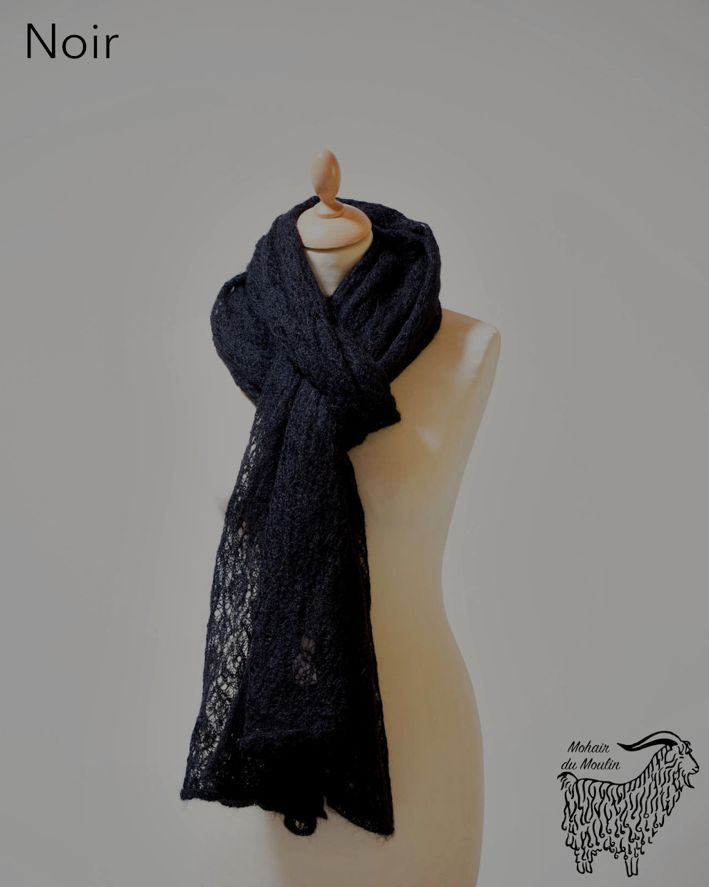 Dimensions de l’étole en mohair ajourée : 200 x 80 cm.