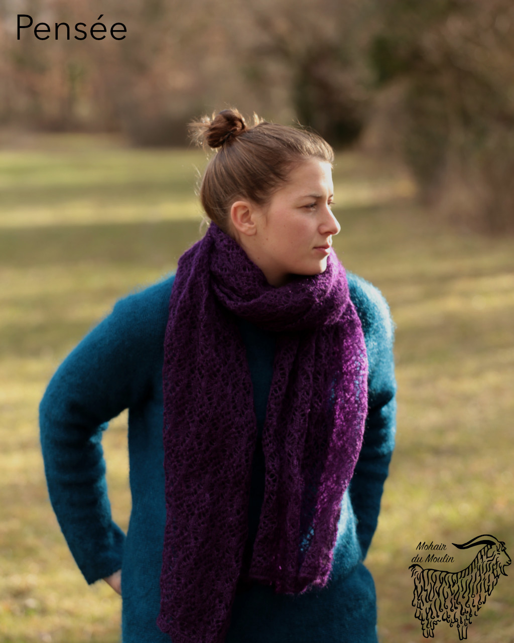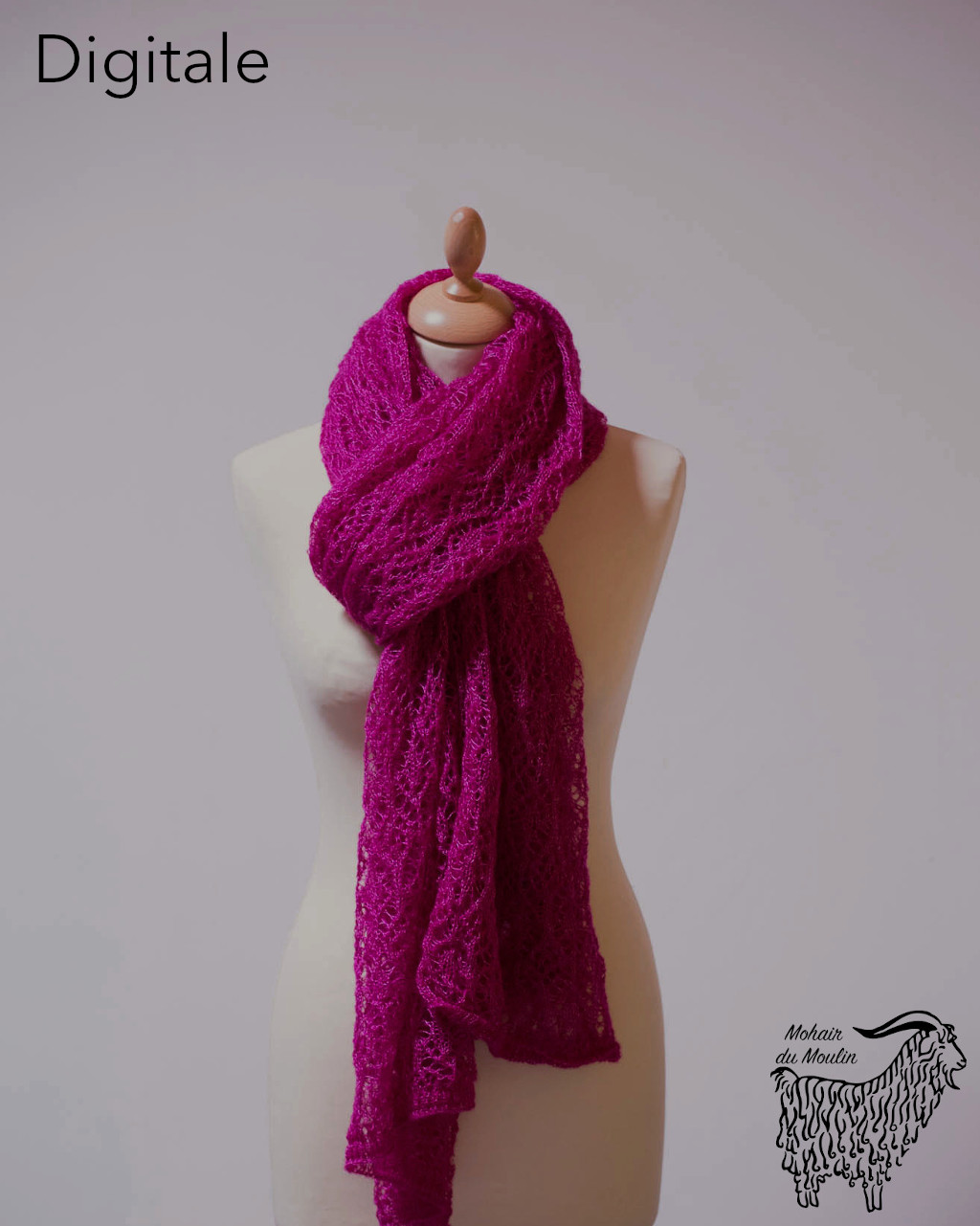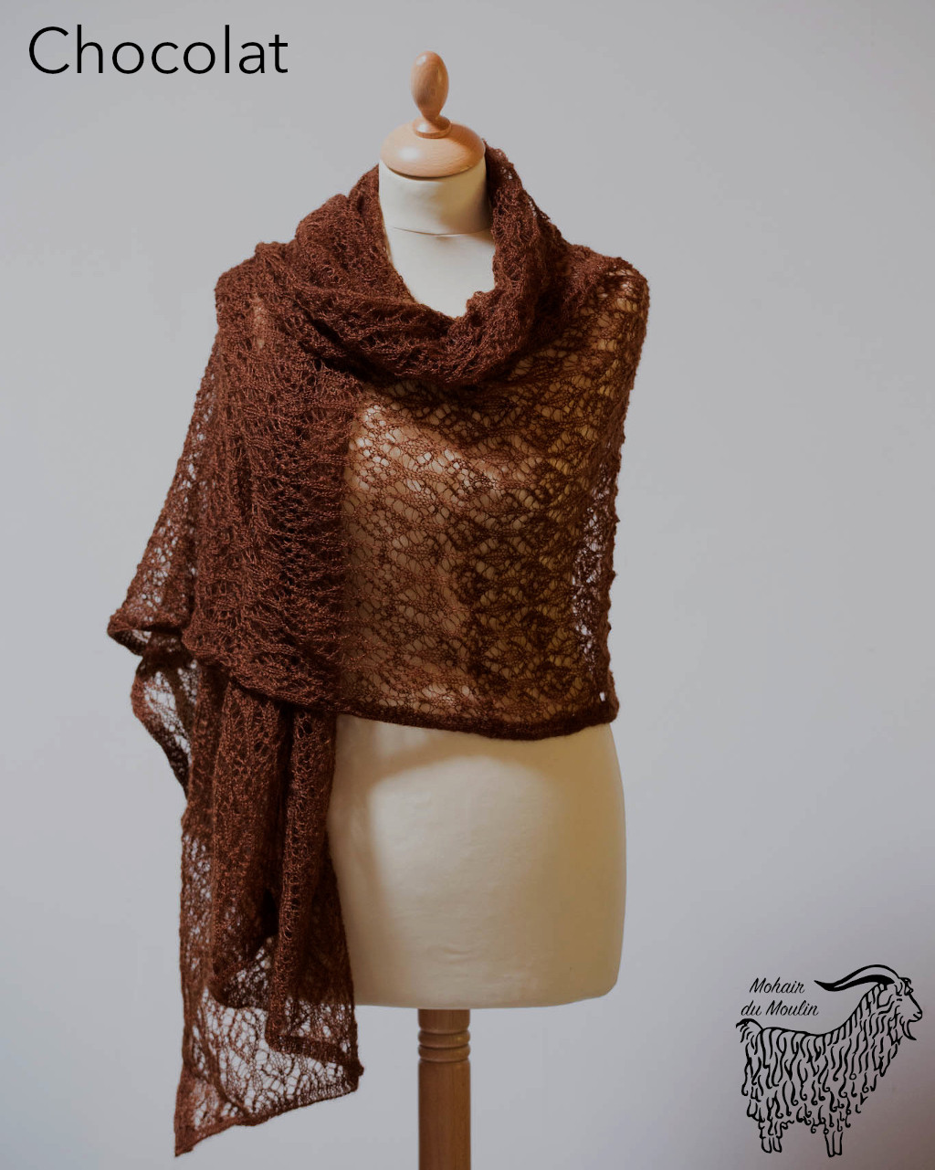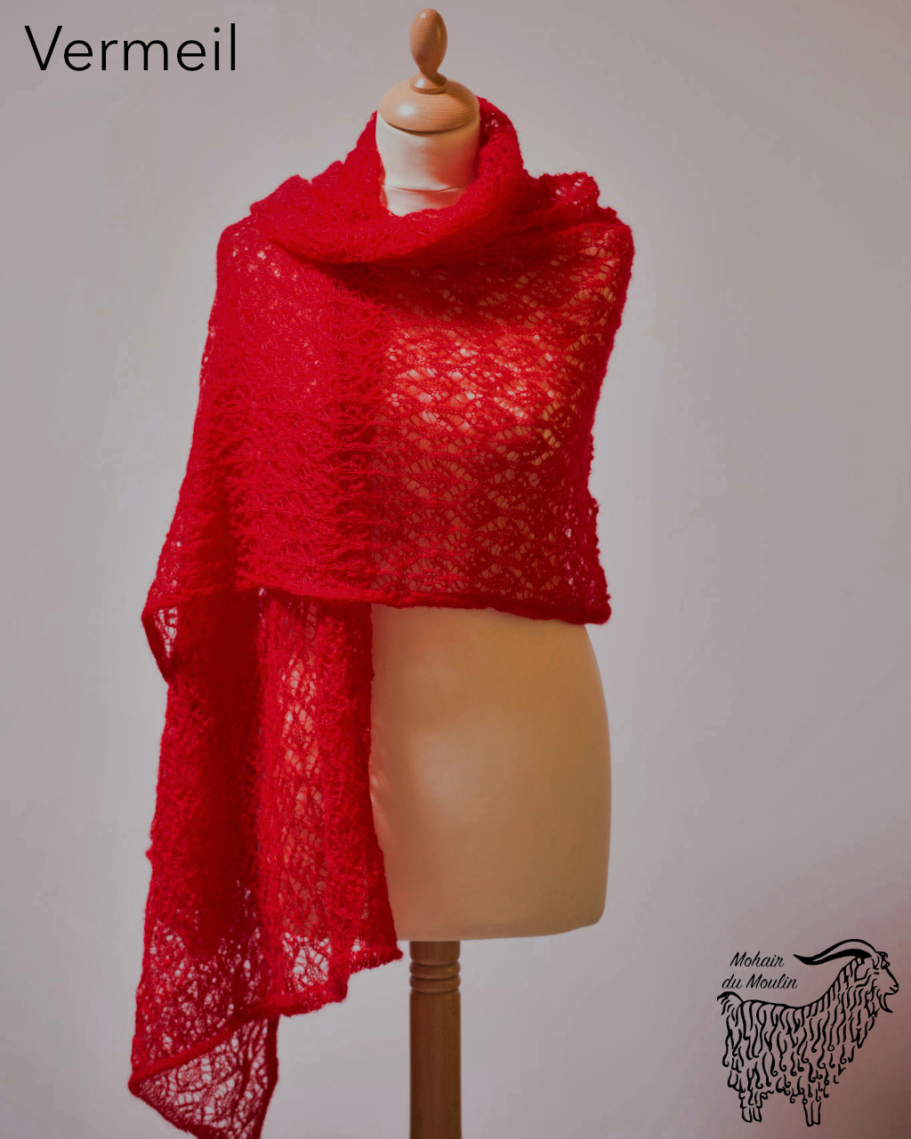 Dimensions de l’étole en mohair ajourée : 200 x 80 cm.