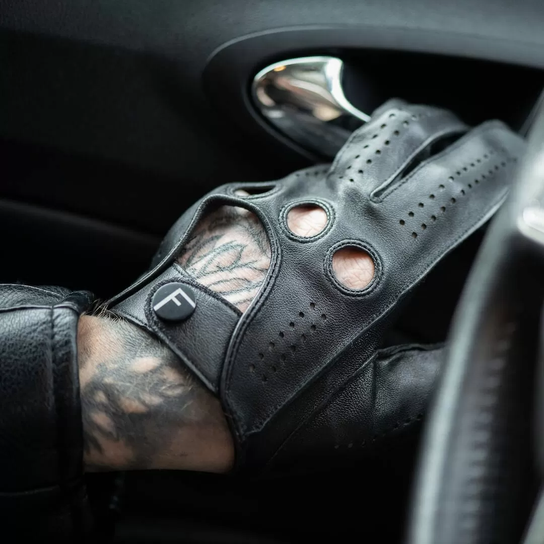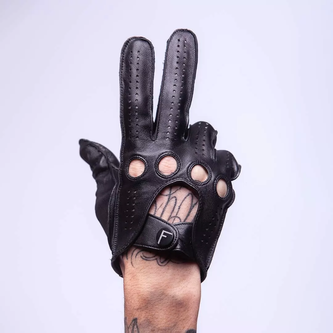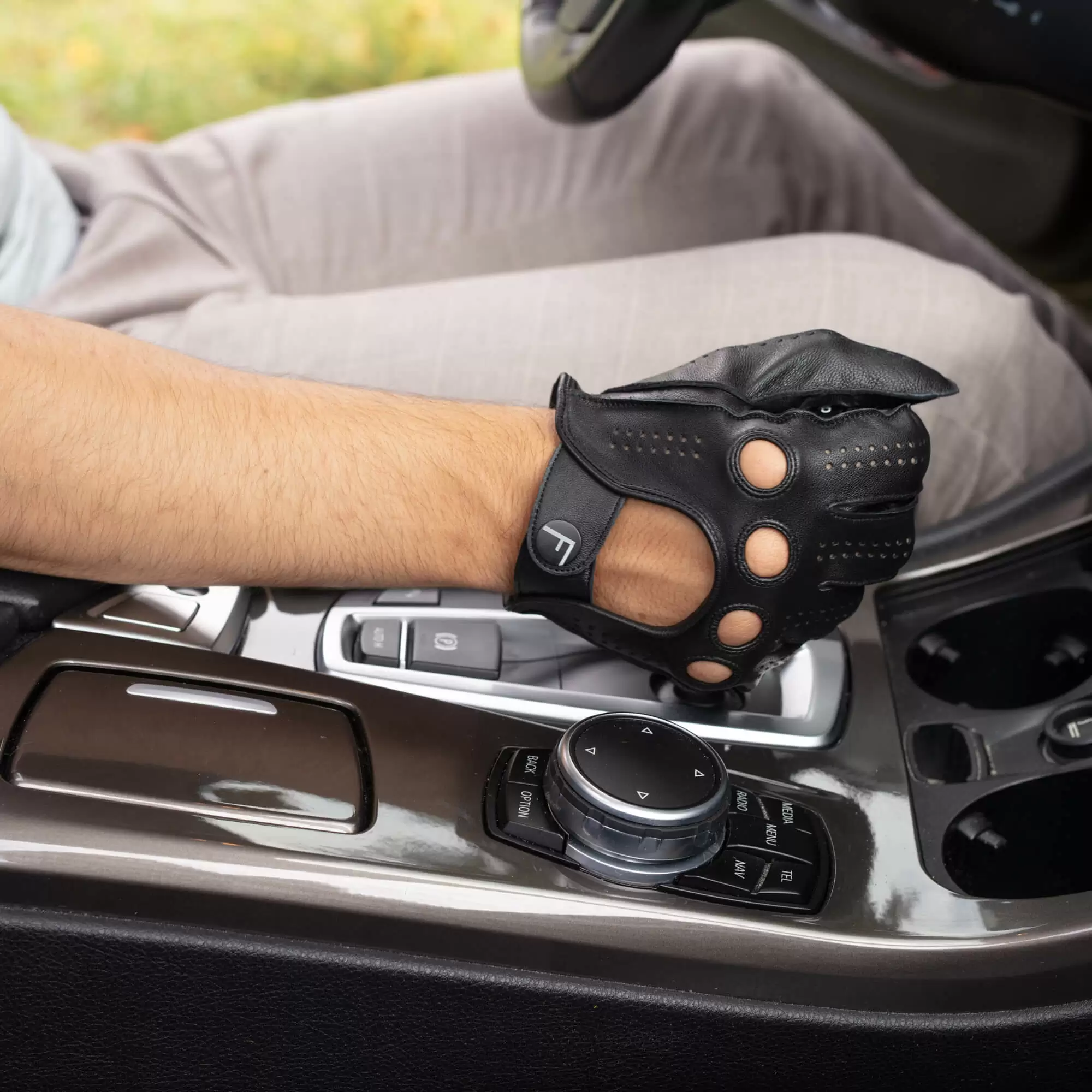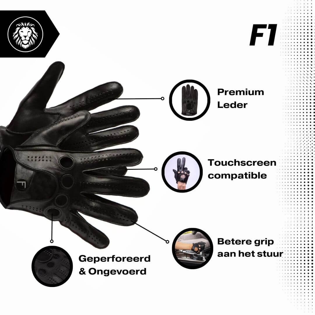 F1 (Heren) – Zwart Leren Autohandschoenen met Touchscreen functie, Cut-Out Rug & Knokkelgaten