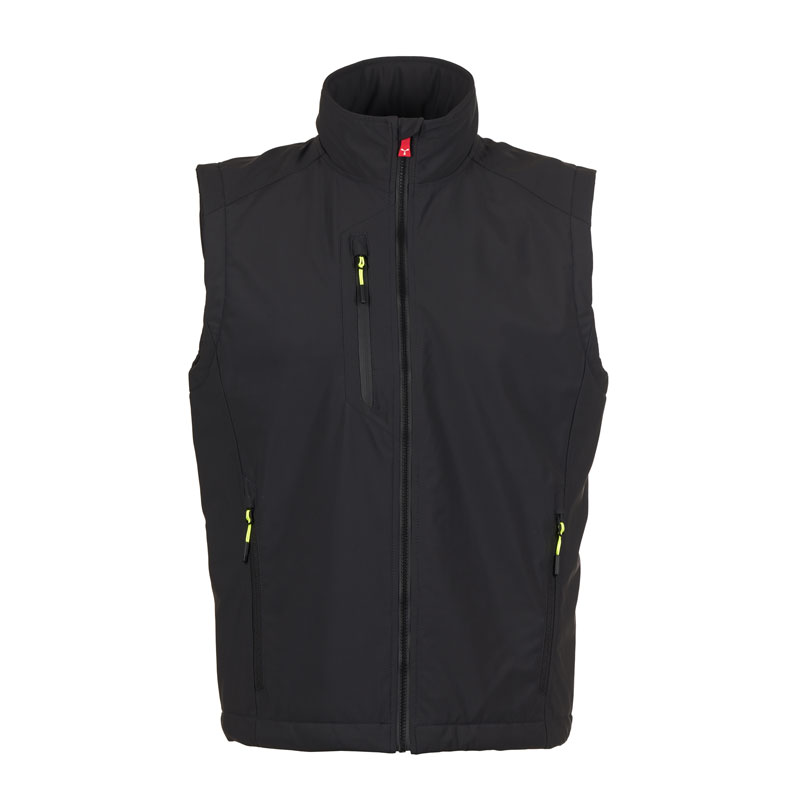 Gilet soft-shell avec rembourrage léger de 100 g/m², pour homme, fermeture par zip SBS avec curseur en métal à verrouillage semi-automatique et tirette personnalisée.