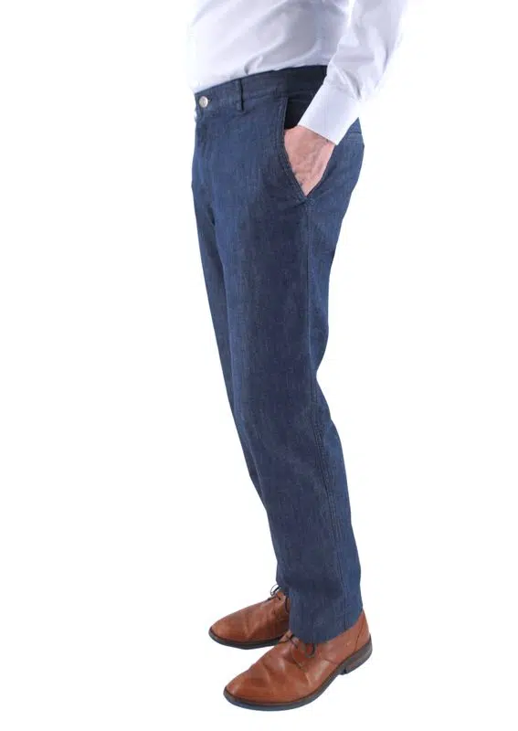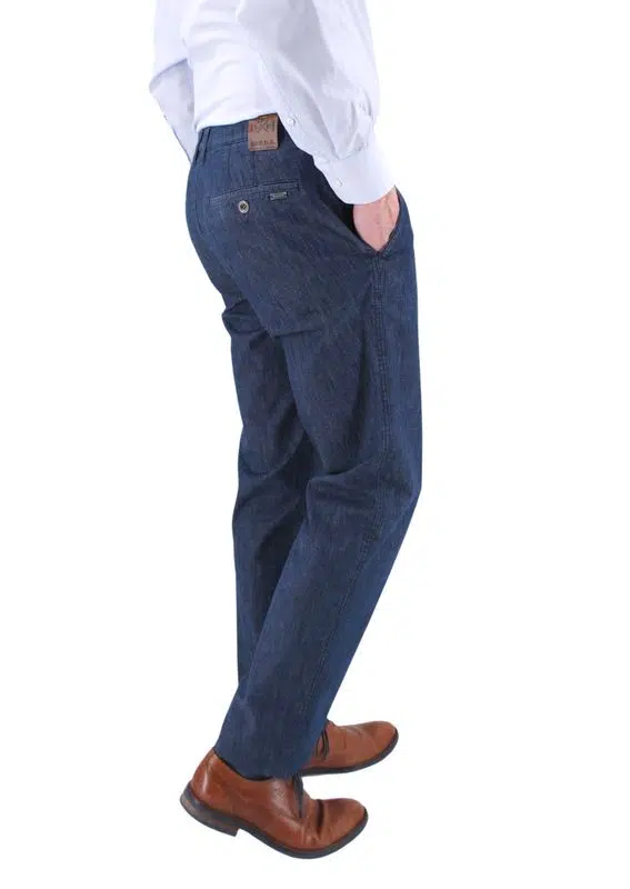 Dans la gamme des jean Mens il y a les tissus 5838 (hiver), 5795 (toutes saisons) et ce tissu 5910 léger pour l’été. Ce pantalon est en coupe Madison (bas 19 centimètres) alors que le Madrid est un bas de 20 centimètres. Ce modèle existe en 2 couleurs, ce modèle est la couleur bleu foncé.