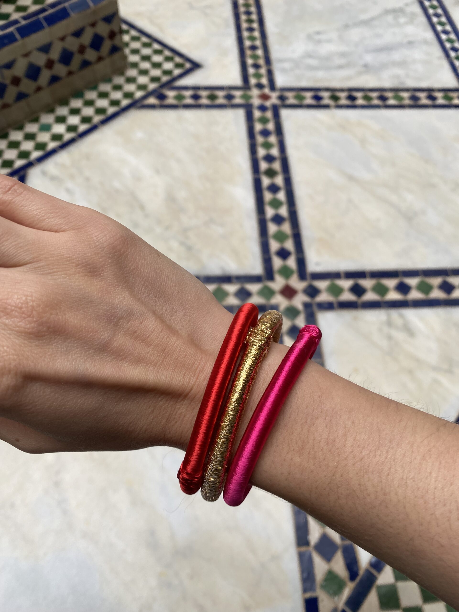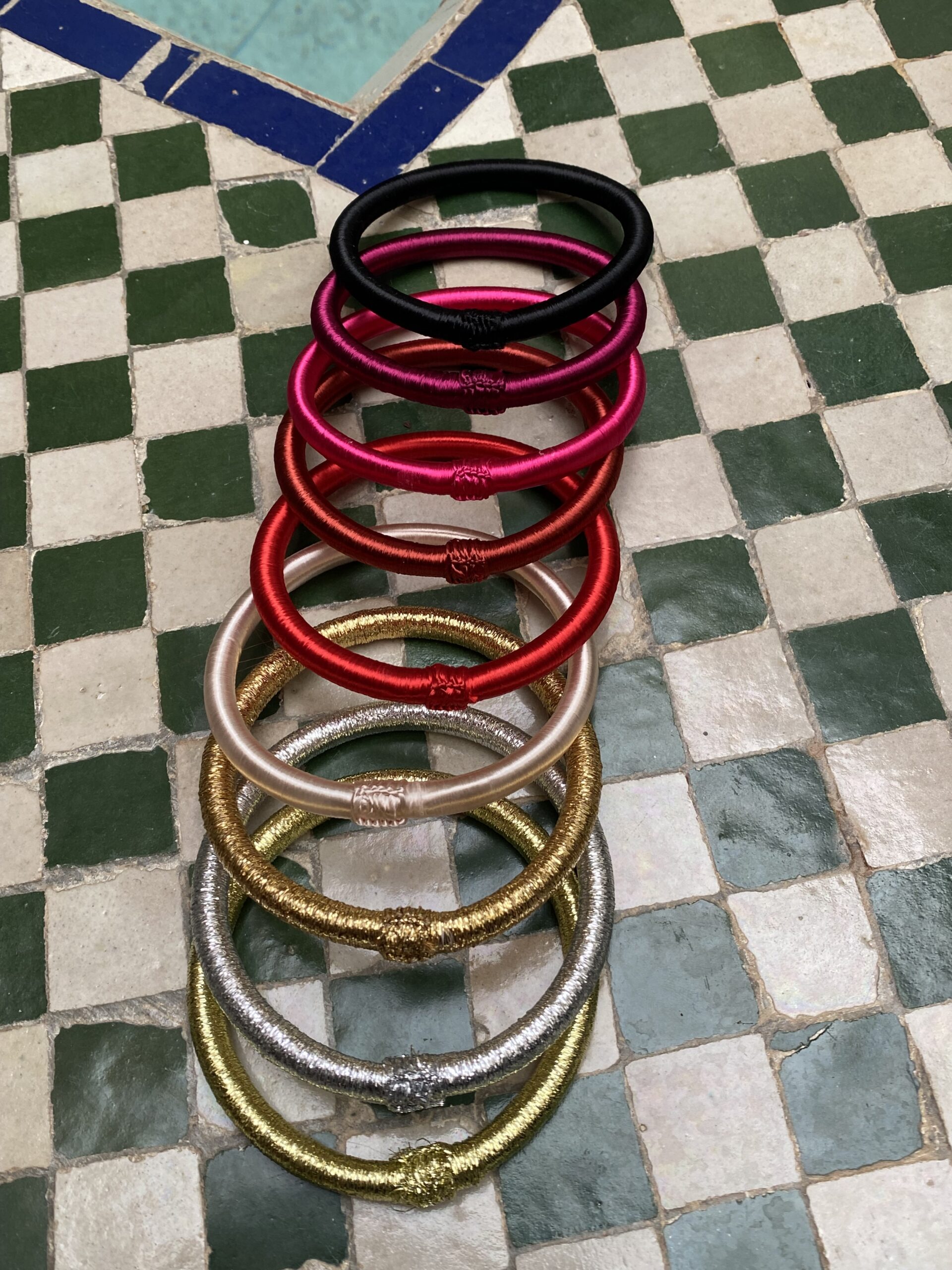 Craquez pour ce nouveau modèle de bracelets joncs en soie. Ils sont fabriqués à la main avec du fils de Sabra et se parfument de votre fragrance favorite pour sentir bon tout au long de la journée.