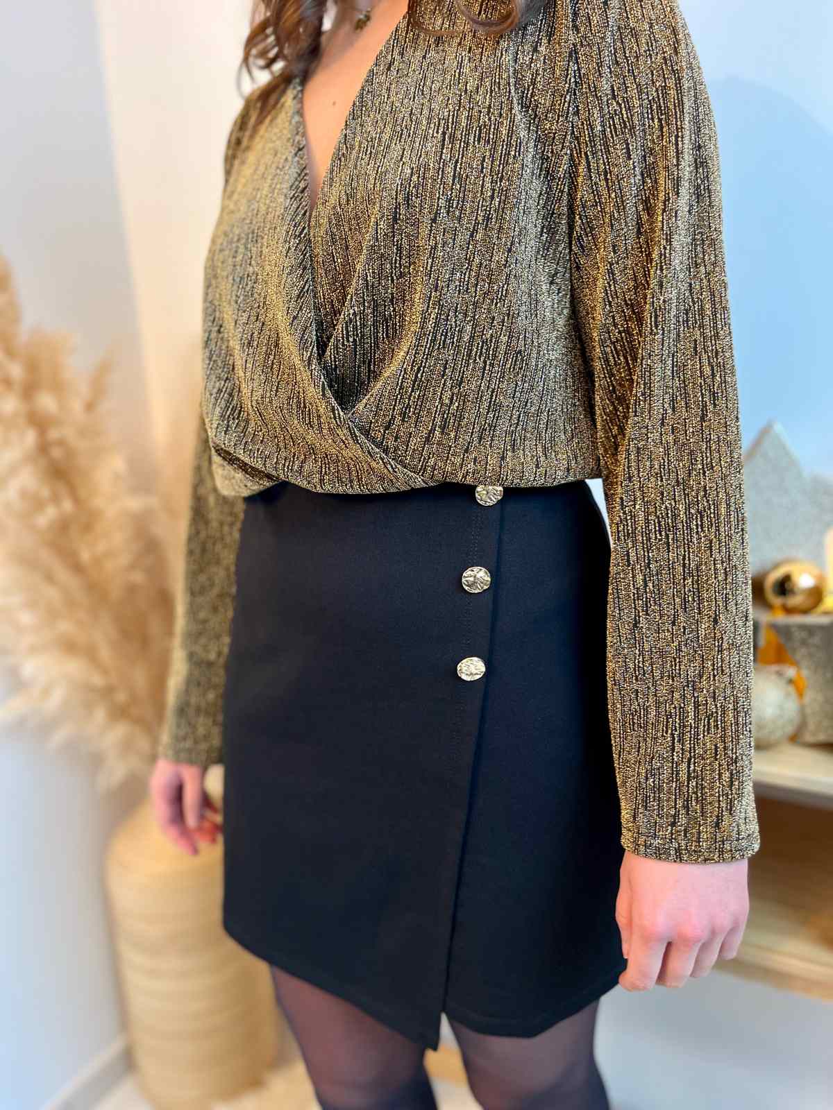 Votre nouvelle jupe chouchou, la jupe courte noire aux boutons dorés.