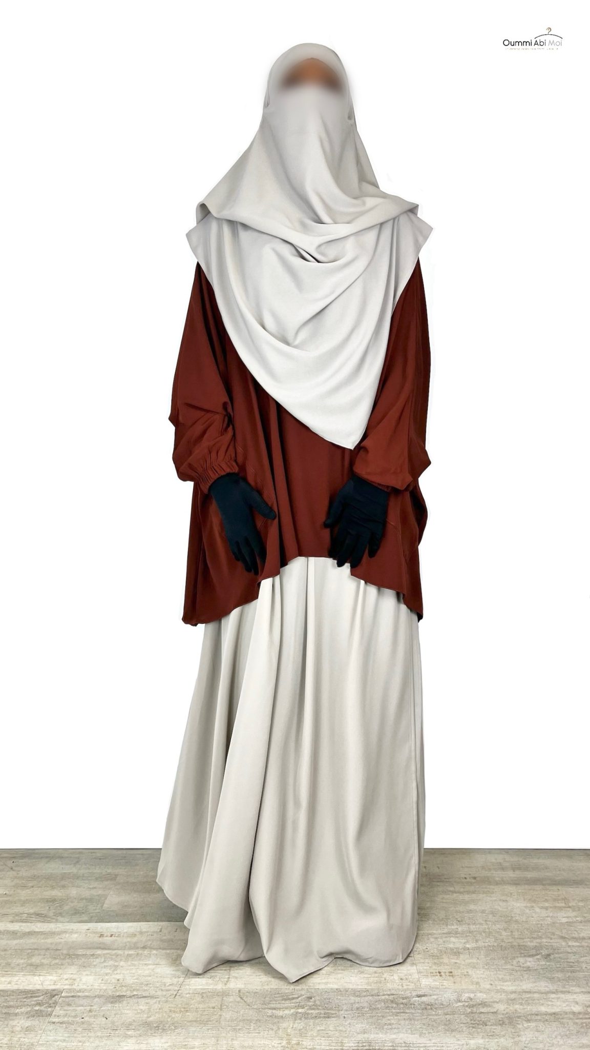 - Électricité statique : Humidifiez légèrement vos mains et passez-les sur la abaya pour réduire la charge statique.