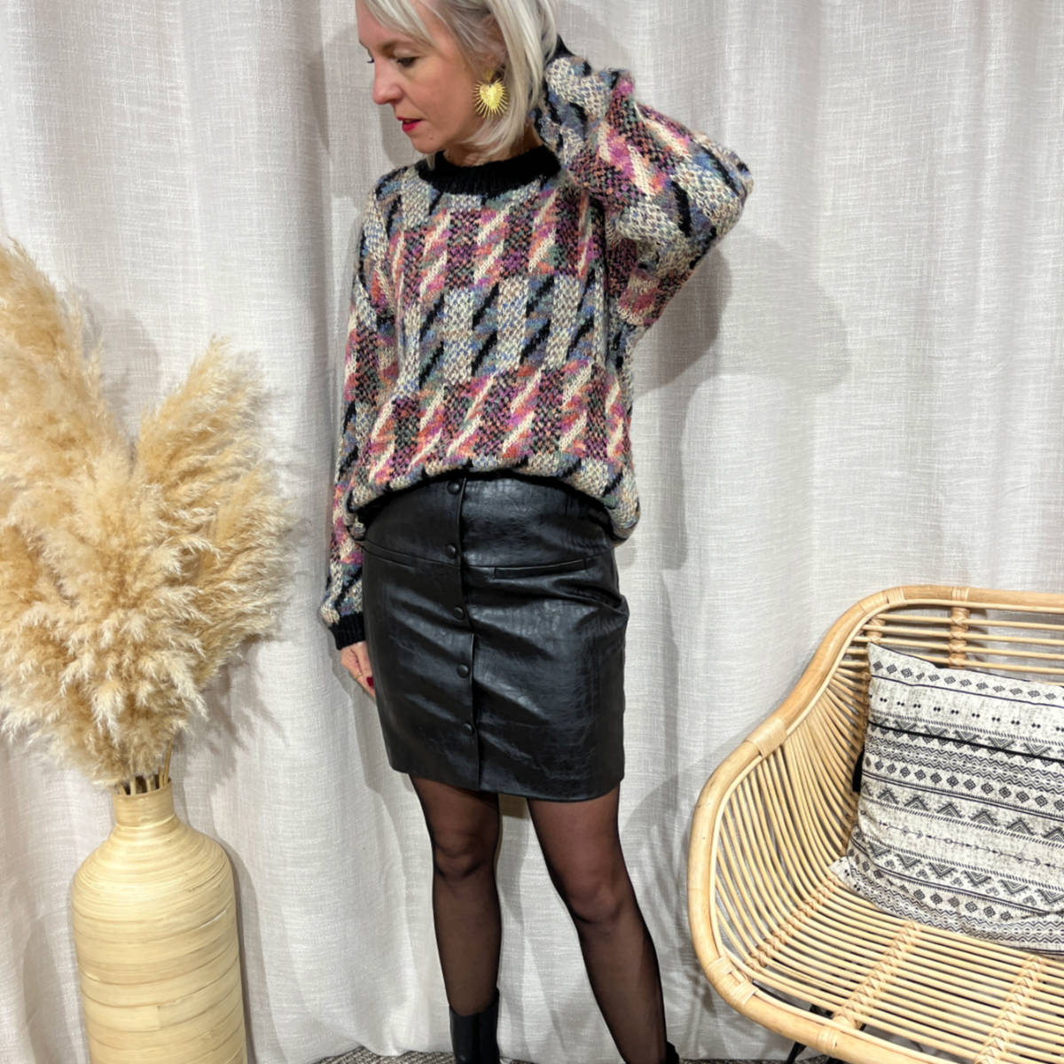 Portez la jupe simili cuir boutonnée avec le pull tricot : un look canon et chaud !