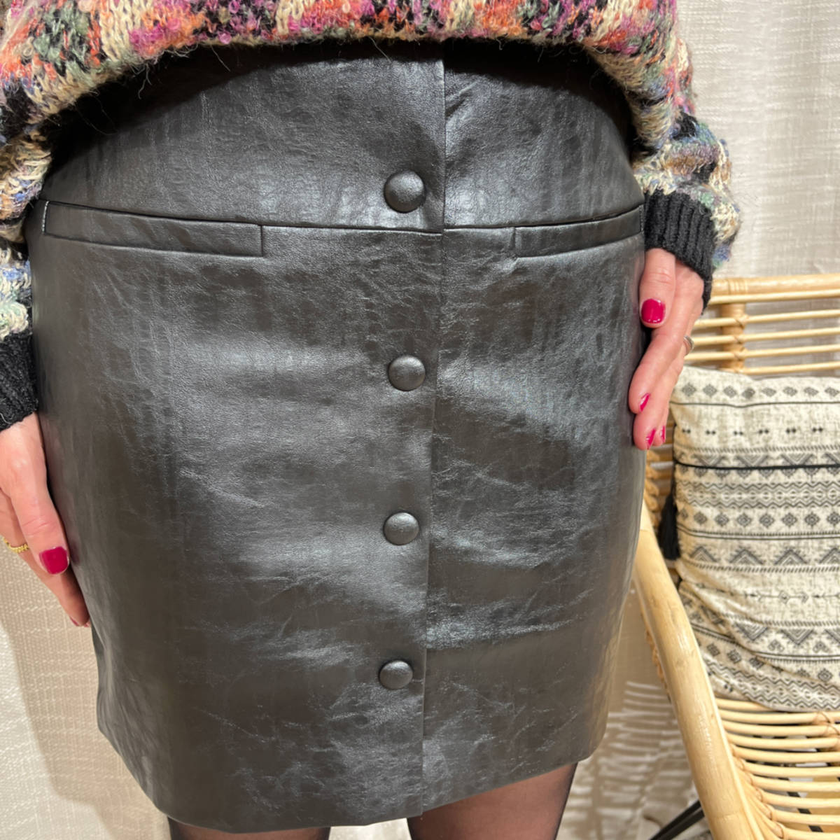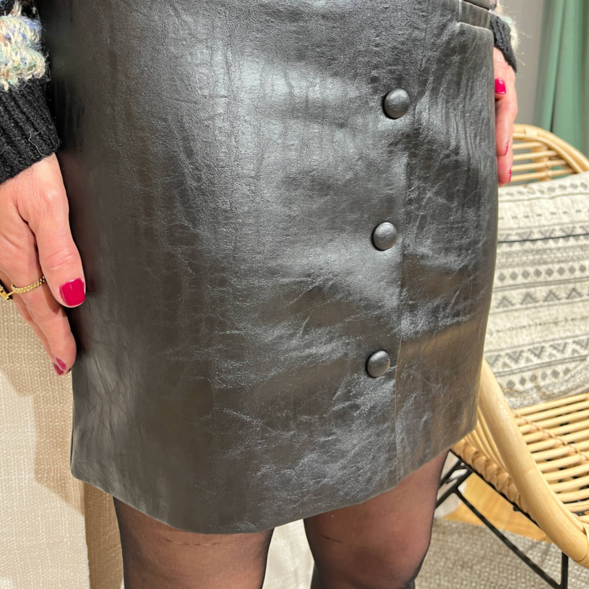 Découvrez la jupe simili cuir boutonnée !