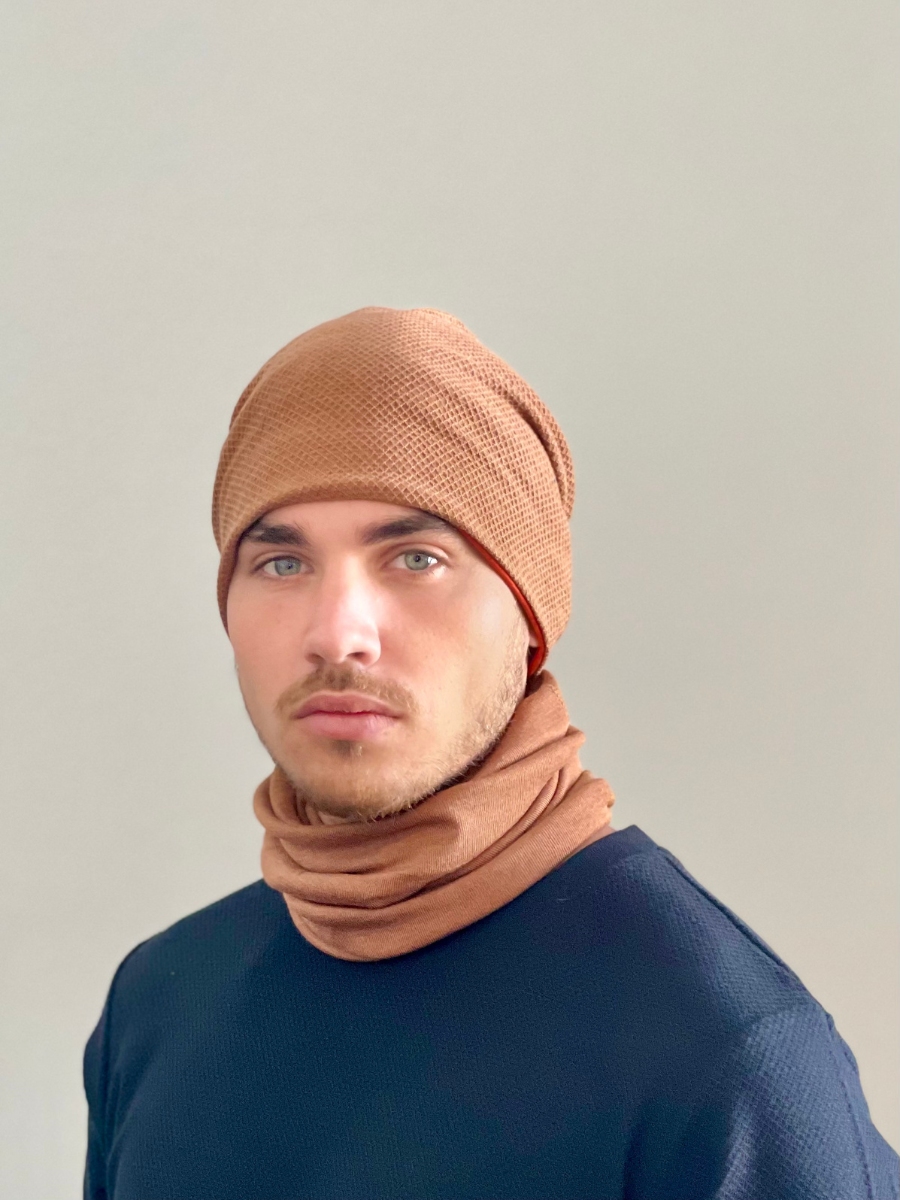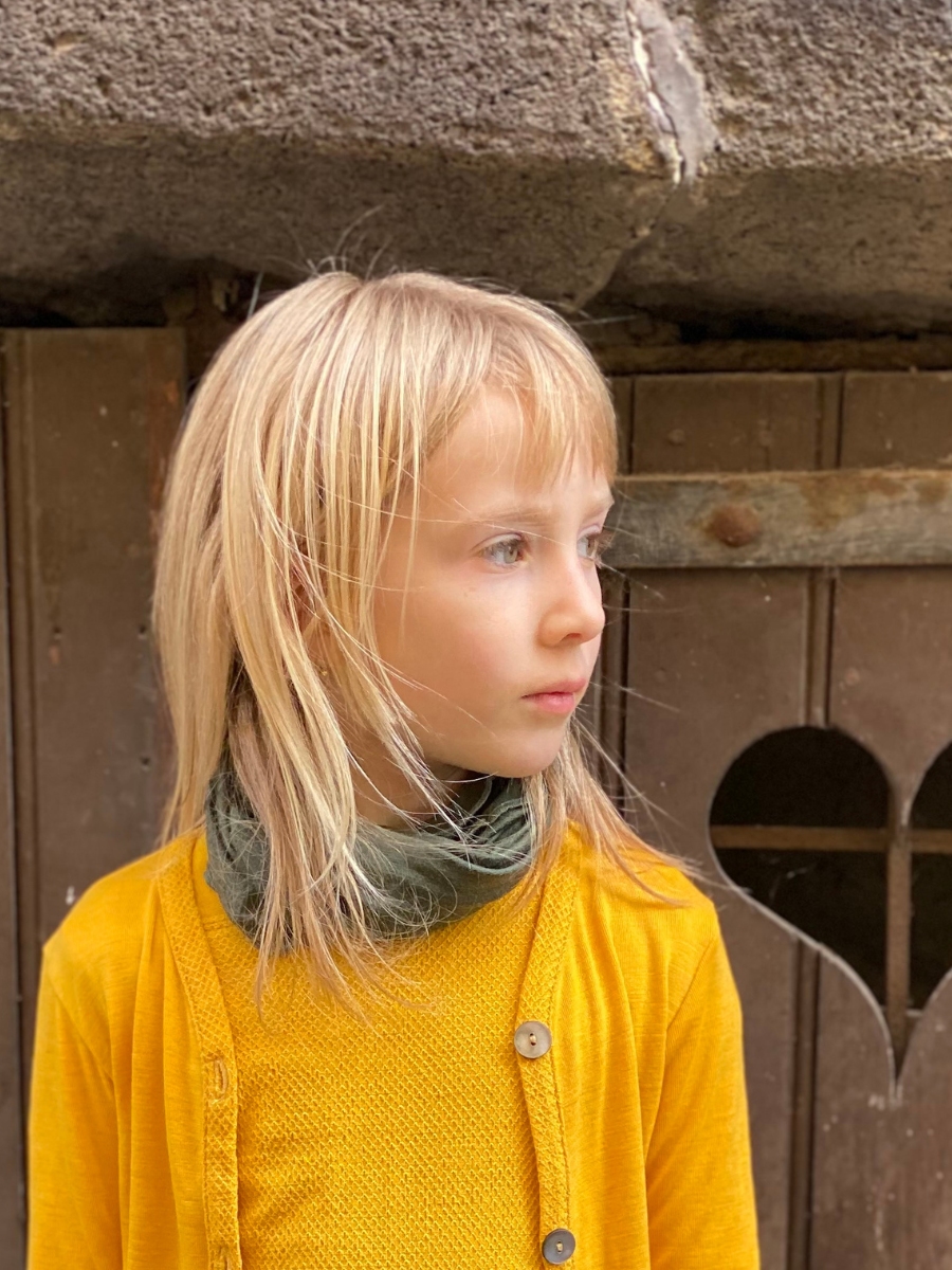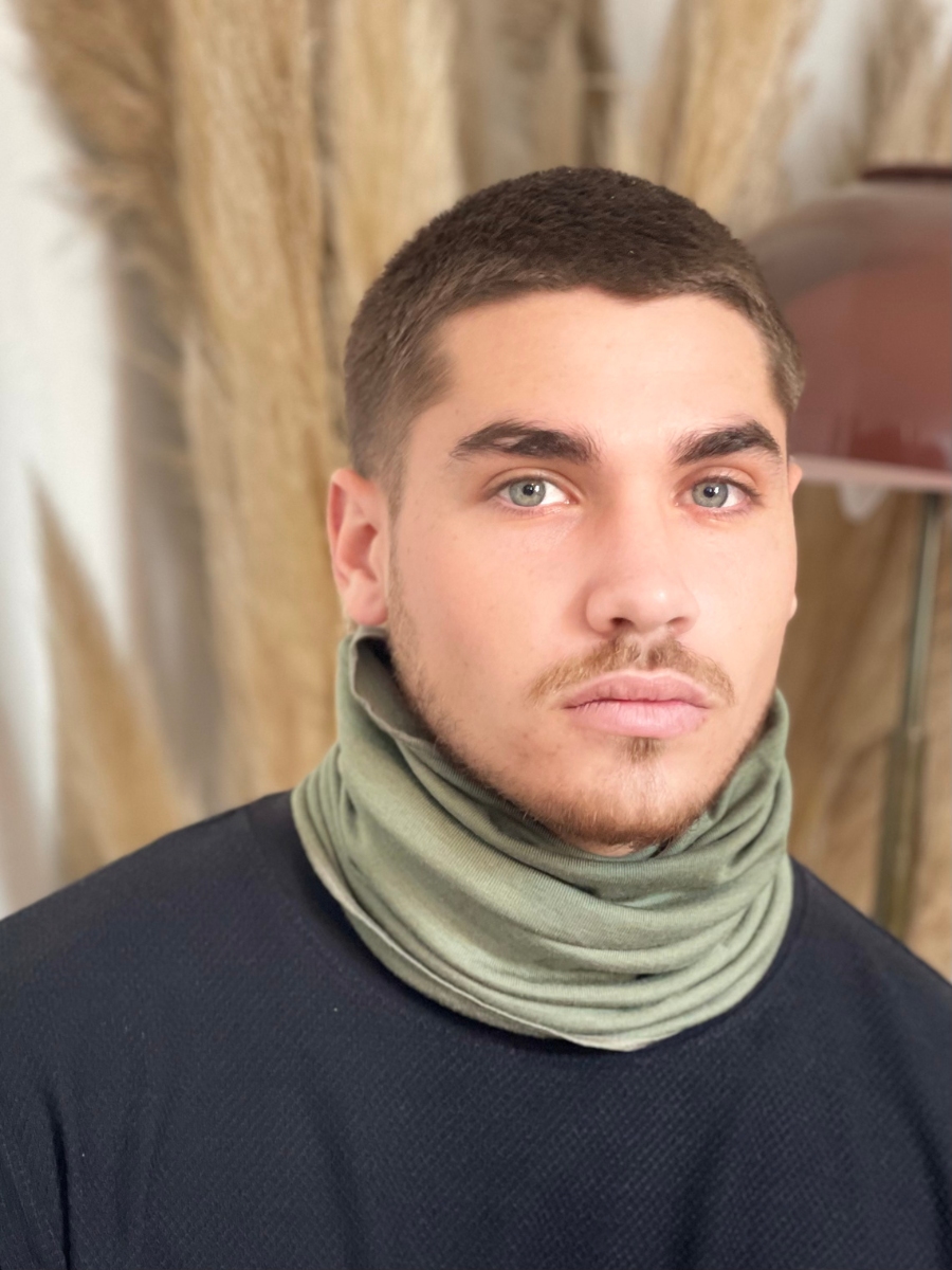 Confectionné en côte ou en jersey Lycra, le Maxitube en laine mérinos bio et soie peut s’utiliser en tour de cou, bonnet, cagoule, cache oreilles, protège-nez..
