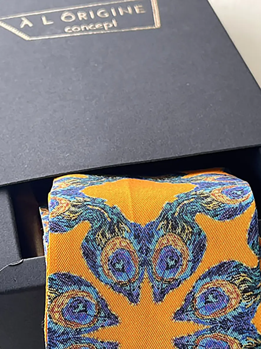 En portant ce mini foulard en soie original, vous ajoutez à votre tenue une note personnelle et intemporelle, tout en soutenant une démarche de mode éthique et créative.