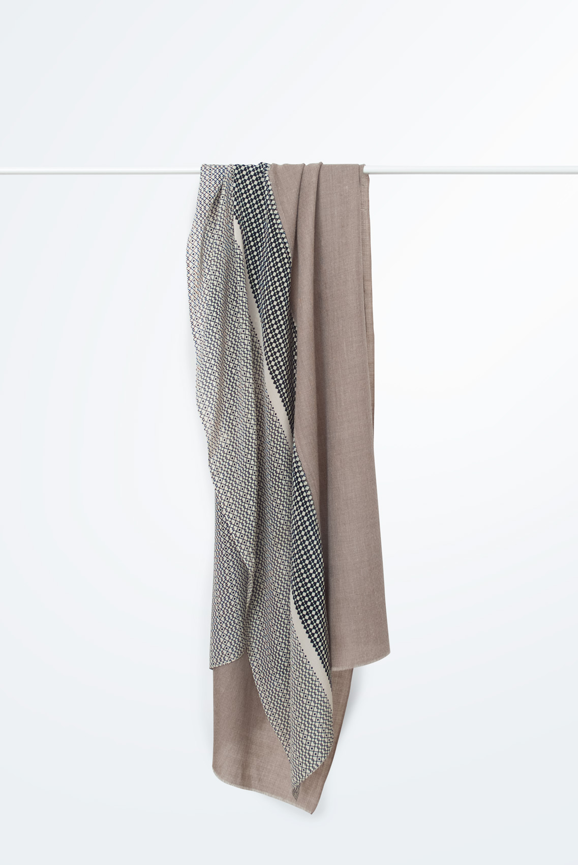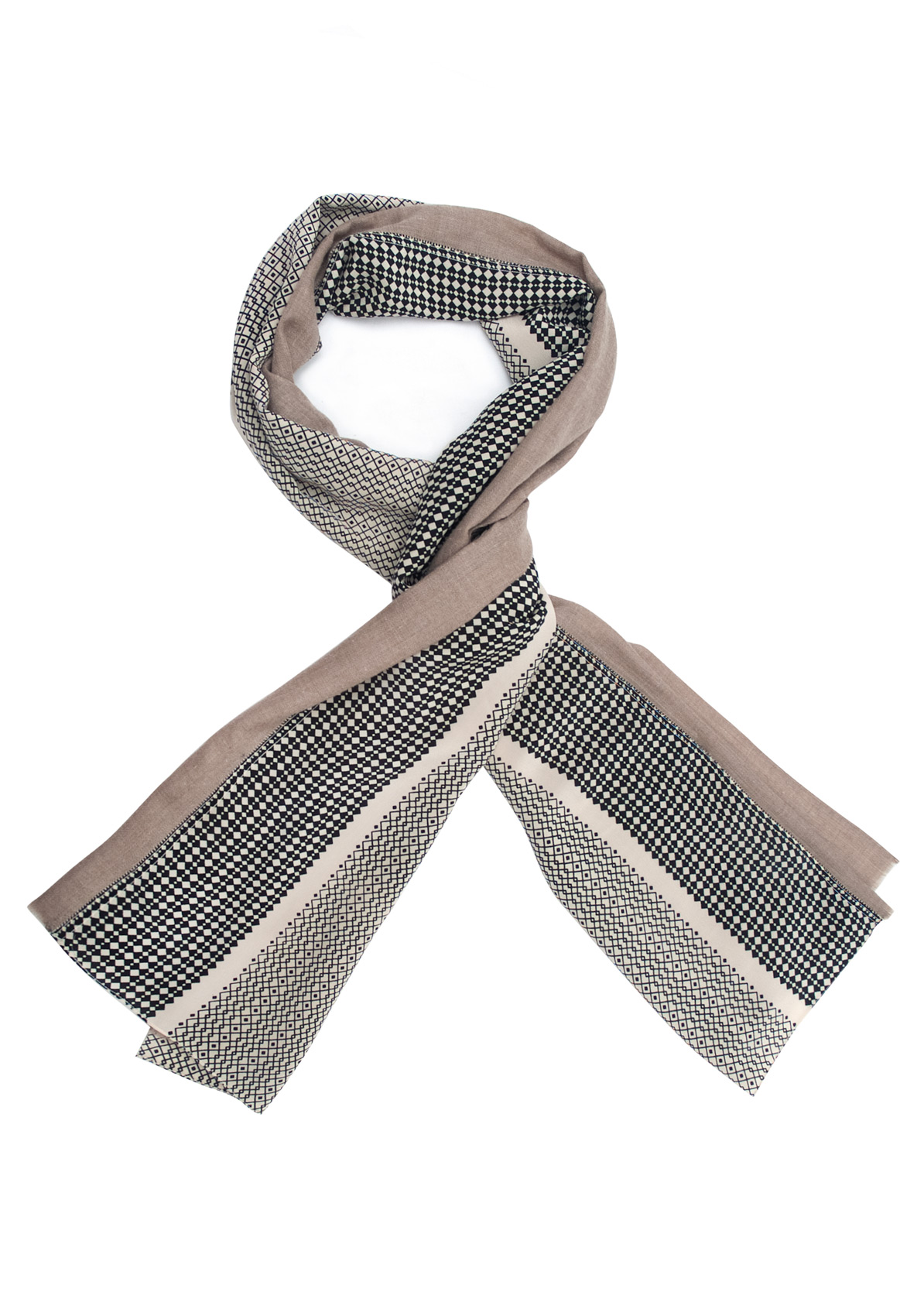 The Najda pashmina is hand woven cashmere by Kashmiris artisans with printed silk crepe. We add a luxury touch with a handmade embroidery instead of stitching them together. It’s a unique handwork that is used in Haute Couture. We decided to apply this elevated technique to our accessory bi-material collection.