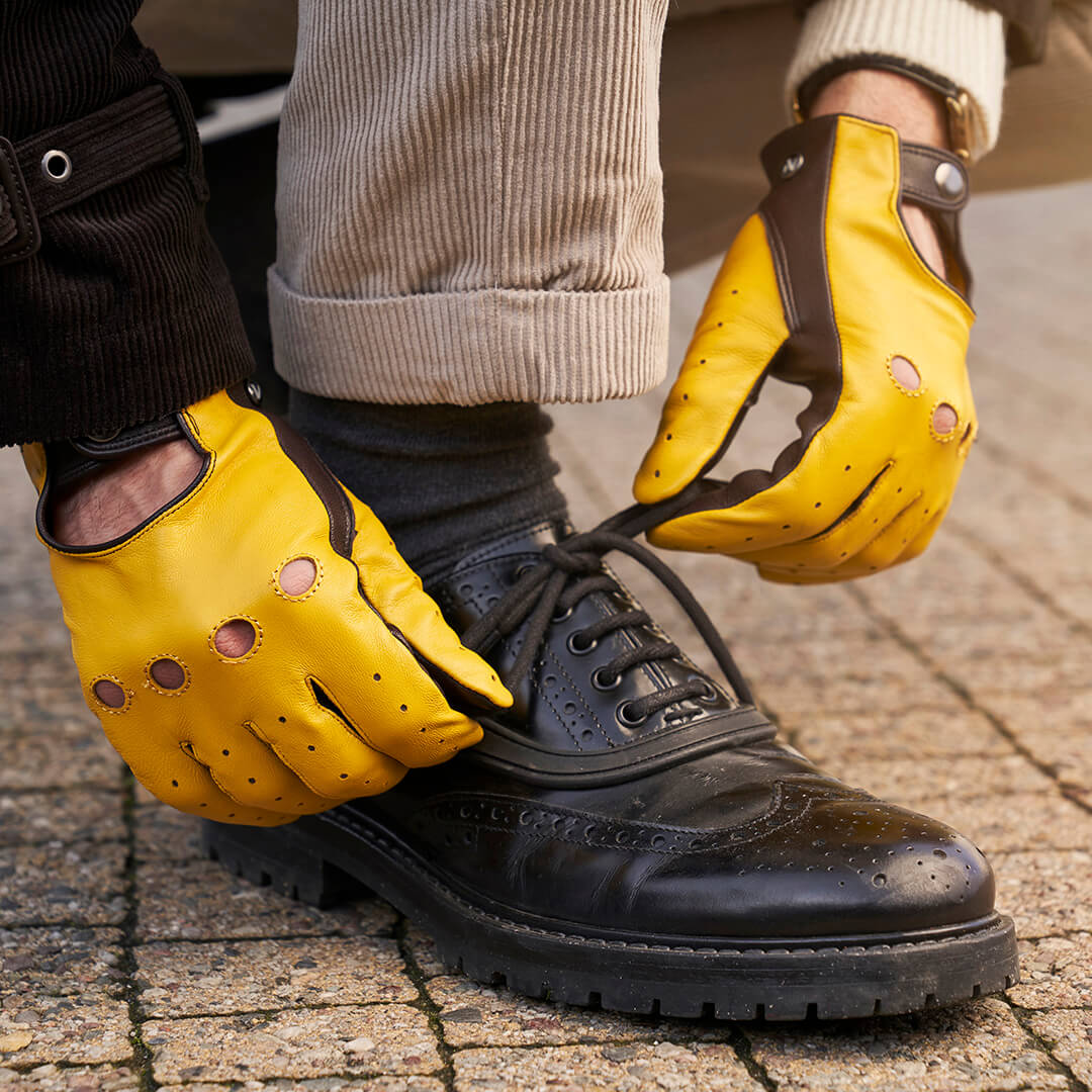 Gants de conduite pour hommes sans doublure en cuir nappa avec la nouvelle technologie d’écran tactile NAPOTOUCH, invisible et résistante à l’abrasion.