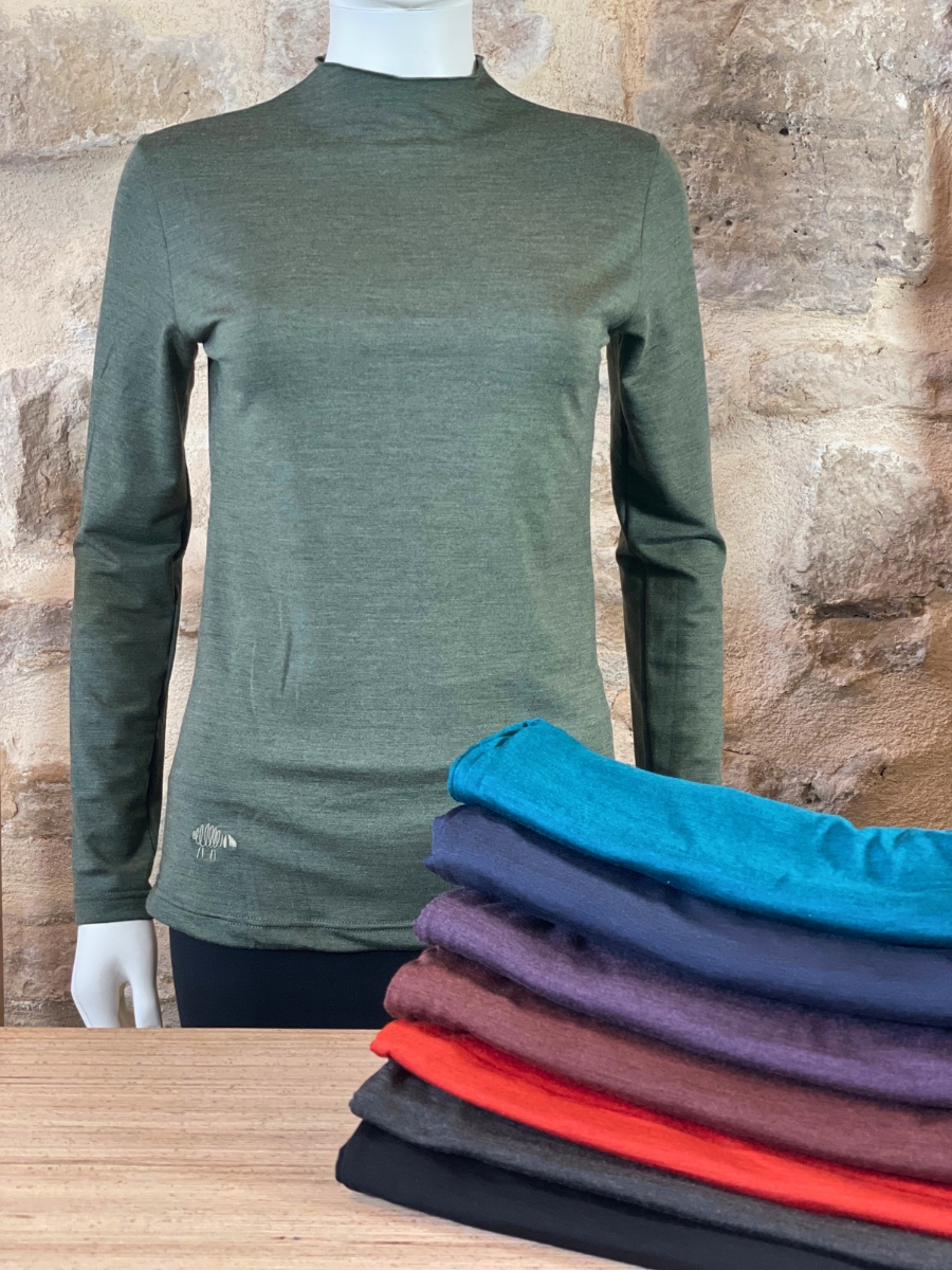Ce tee-shirt col montant est la sobriété incarnée. Près du corps, il se glissera sous toutes vos tenues plus amples pour vous tenir chaud tout l’hiver.