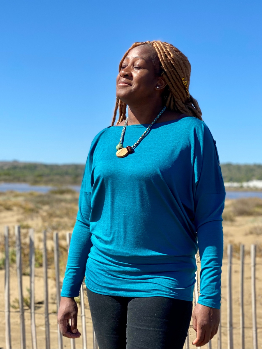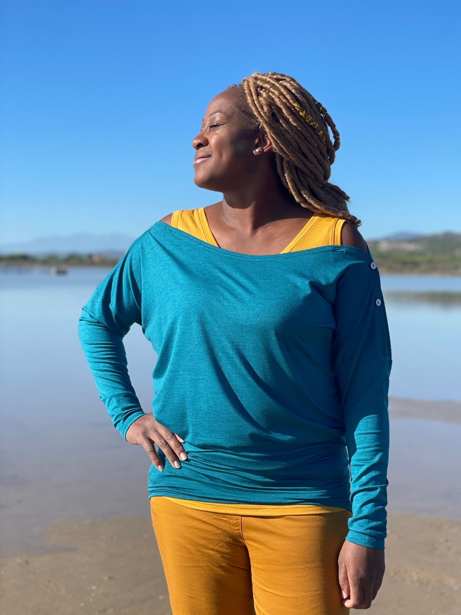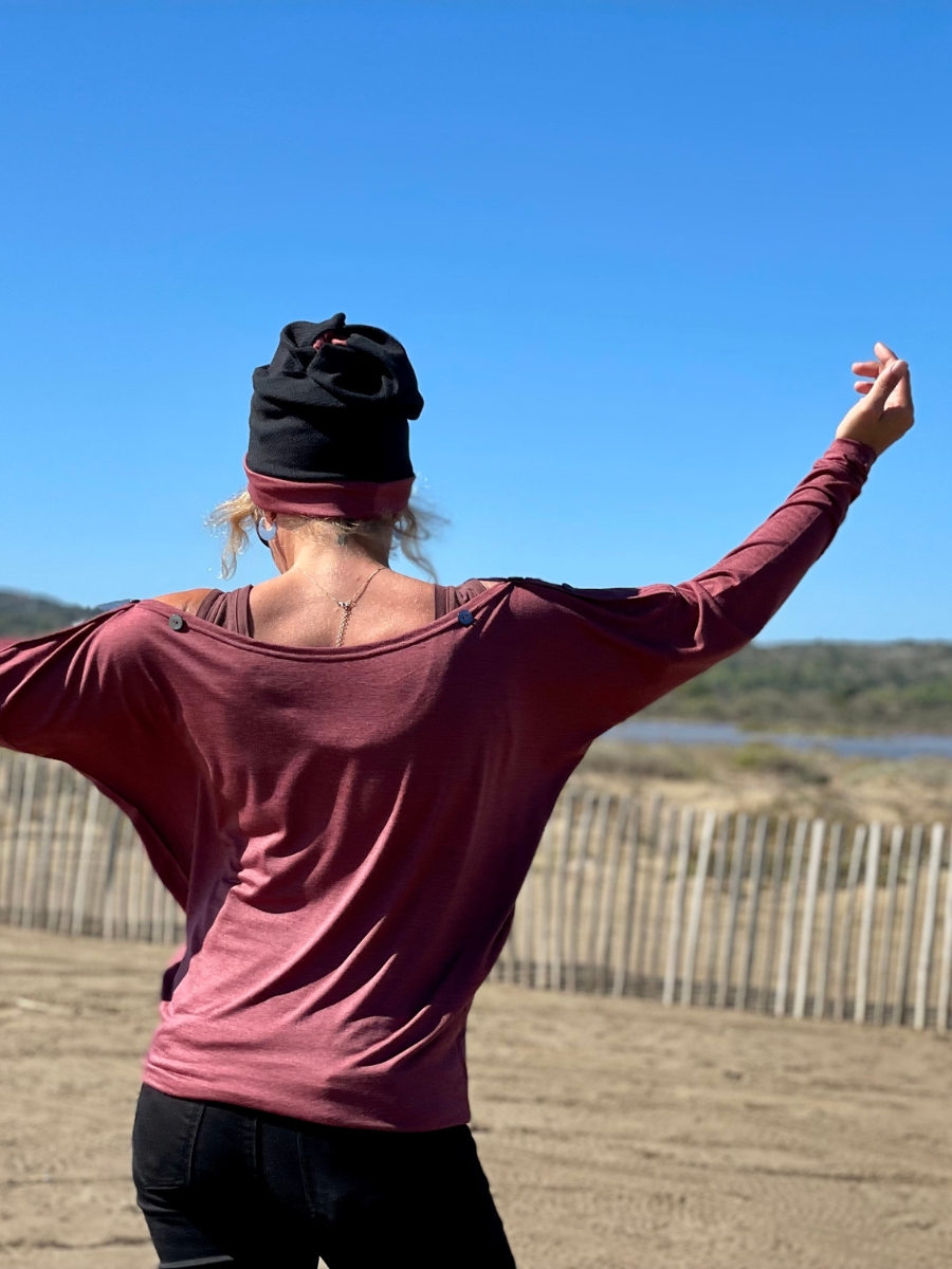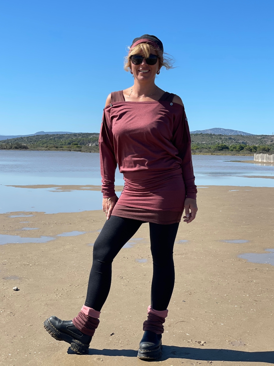 Boutonné sur toutes les épaules, avec le bas à la façon d’un mini TubAtout, il peut se porter de multiples façons.