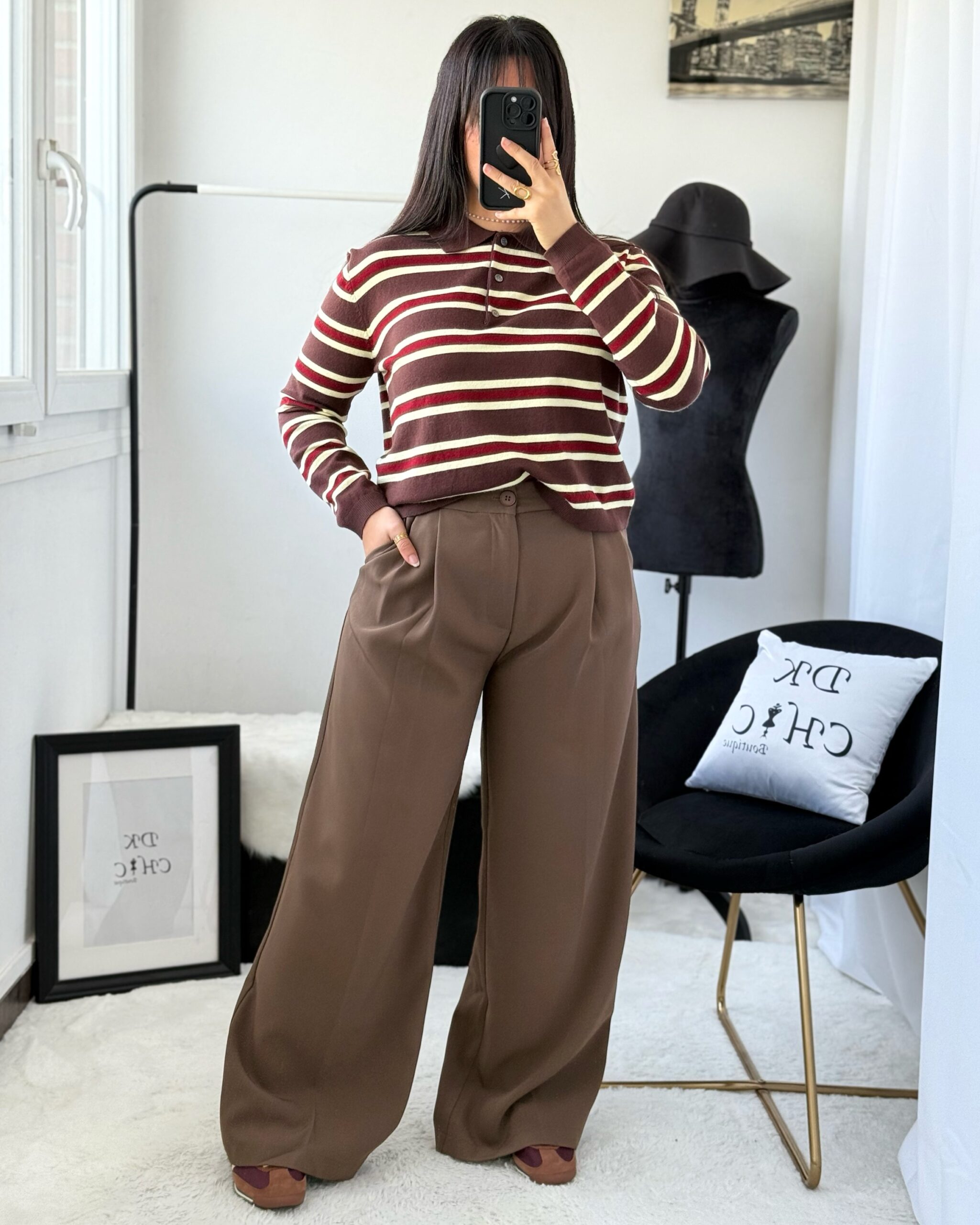 – Pantalon à pince à poche sur les côtés et bouton pour fermer qualité ++