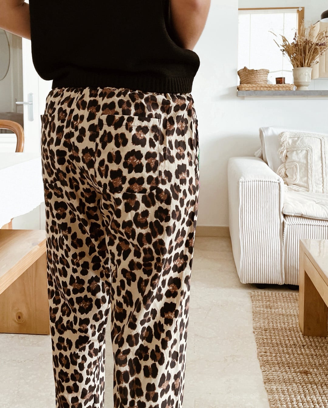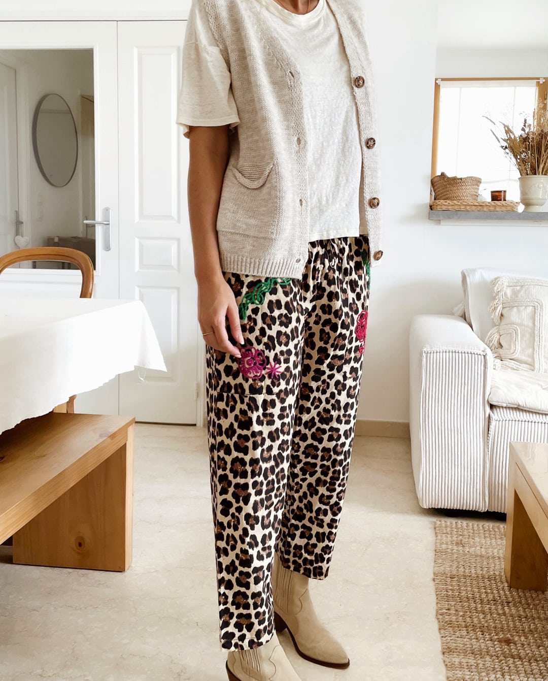 -> Le pantalon léopard bob beige avec le t-shirt en lin Hena écru