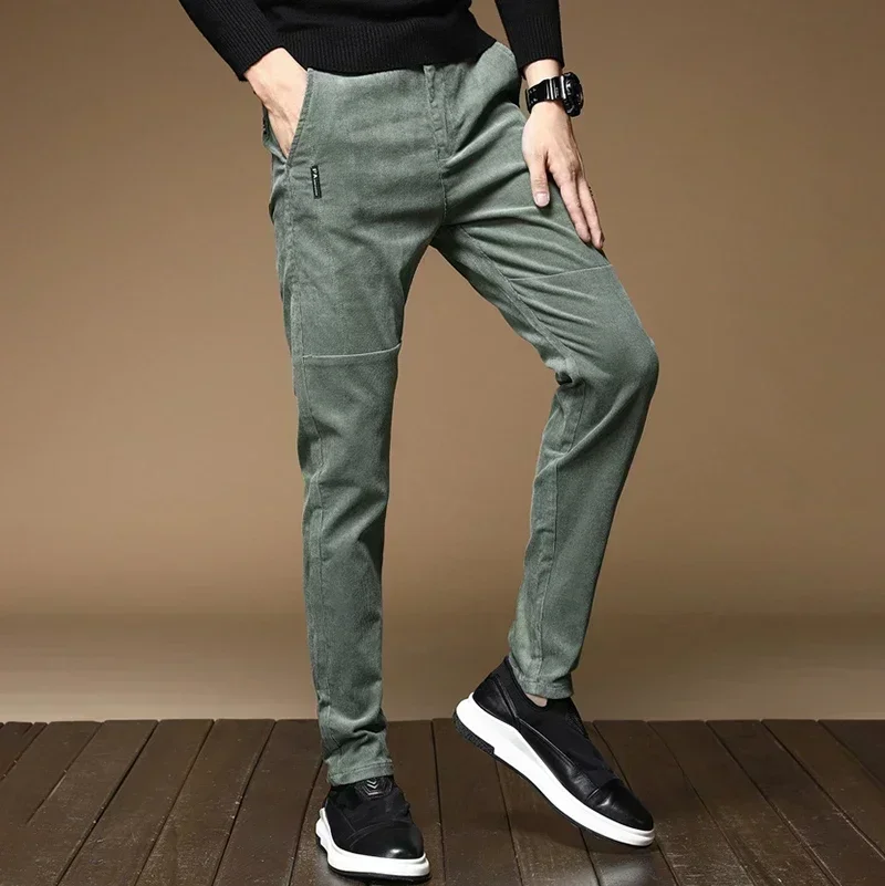 Pantalon polaire homme velours côtelé chaud vert