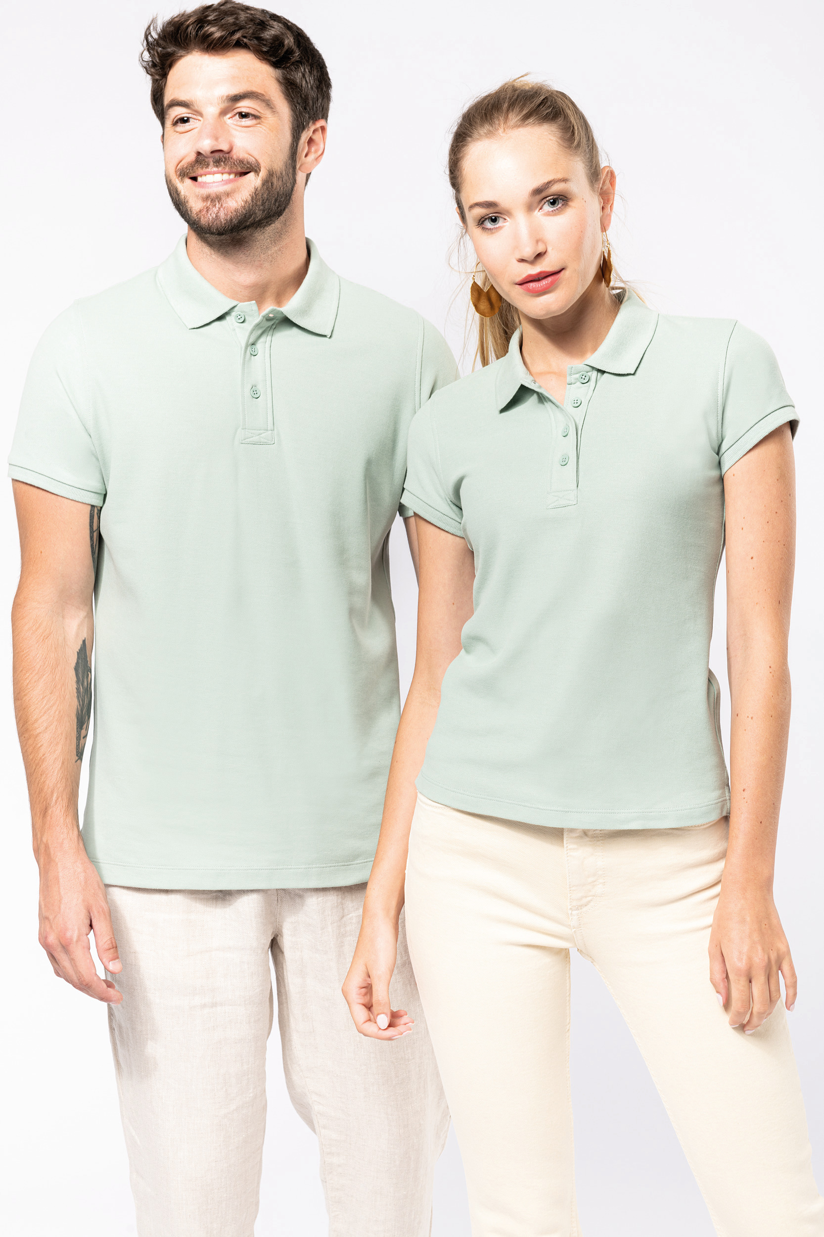 Coloris unis 100% coton biologique. Coloris Wine Heather, Ocean Blue Heather et French Navy Heather 80% coton biologique / 20% polyester. Coloris Grey Heather 70% coton biologique / 30% viscose. Coupe cintrée. Col et bas de manches en bord-côte 1×1. Patte de boutonnage 4 boutons ton sur ton. Finition bande chevron sur intérieur col et fentes latérales. Pas d’étiquette de marque au col, uniquement une puce de taille pour faciliter la personnalisation.