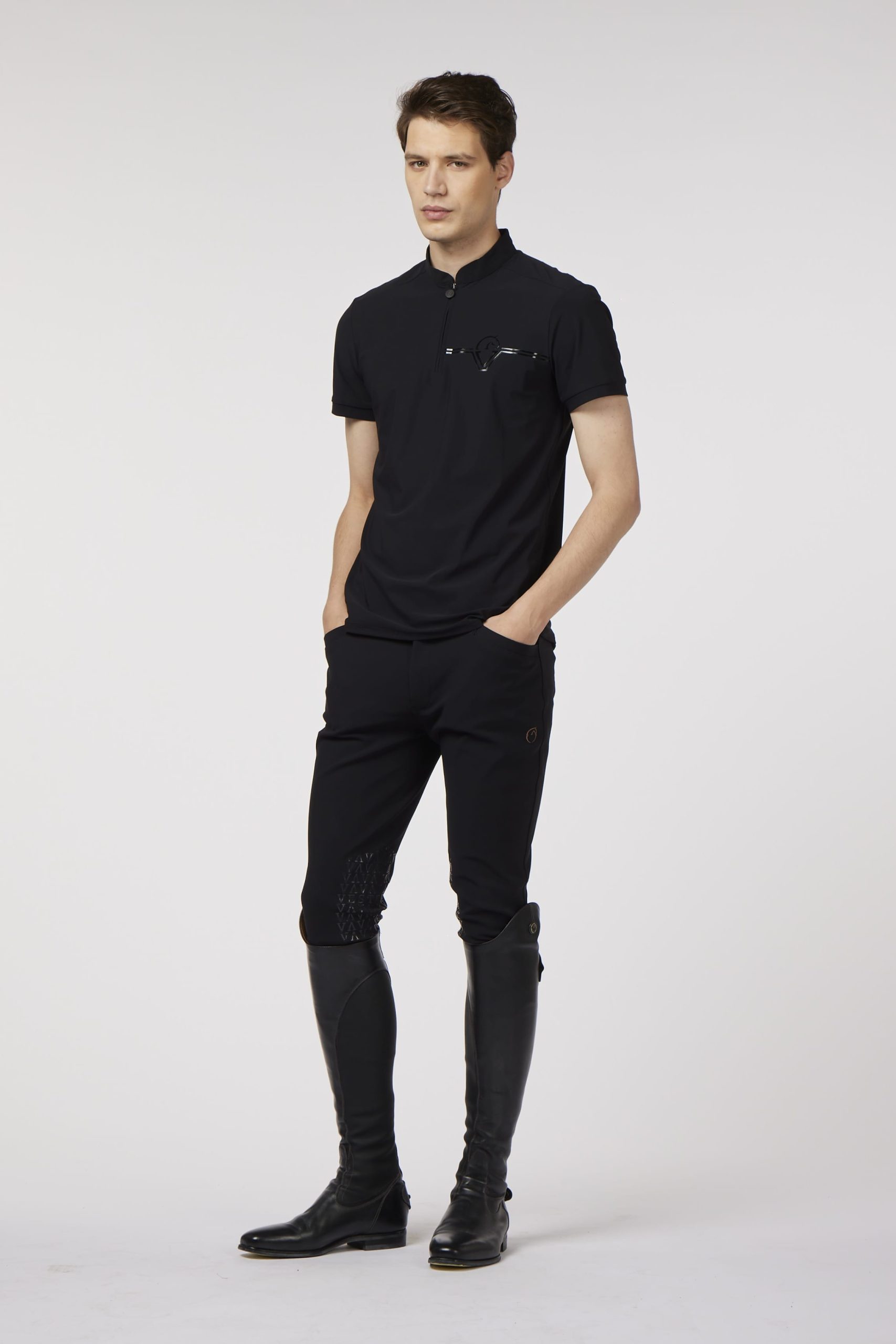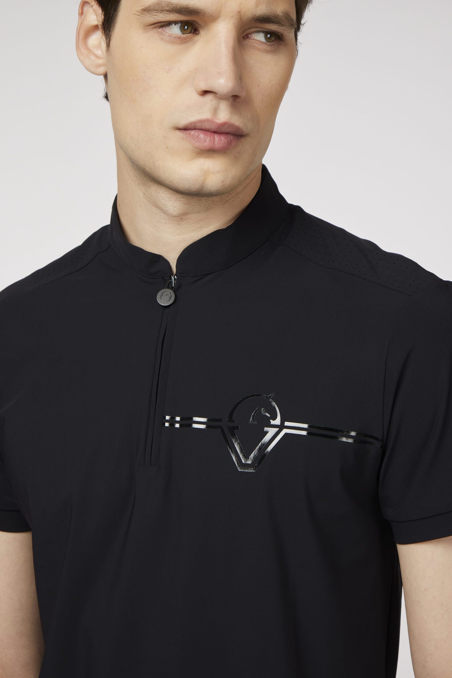 Positano is a men’s training top in technical fabric with a zipper front and mandarin collar. The jersey is embellished with a contrasting applique. The perforated fabric on the shoulders provides increased breathability.