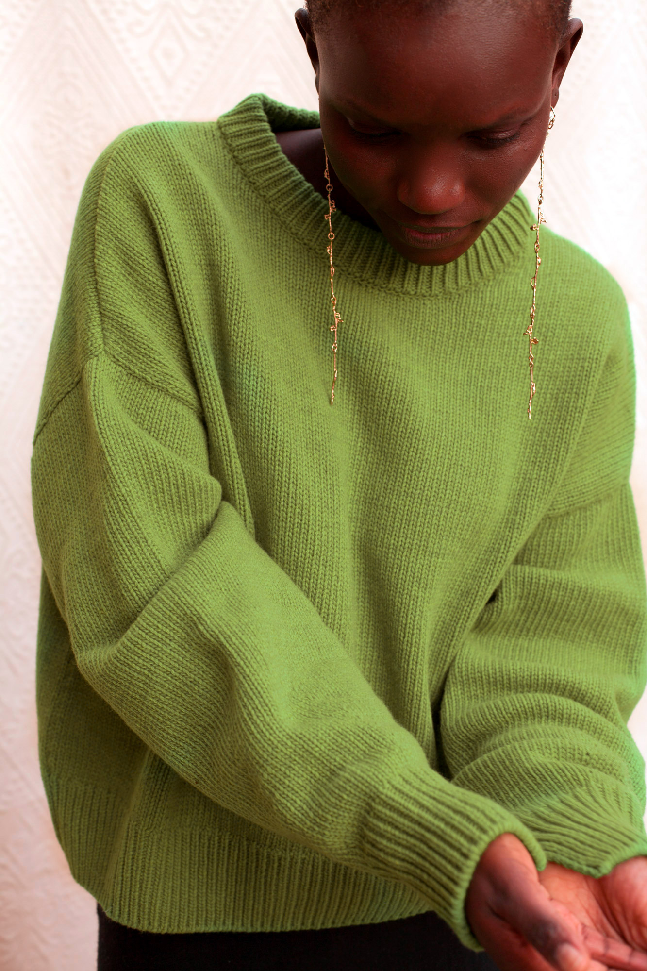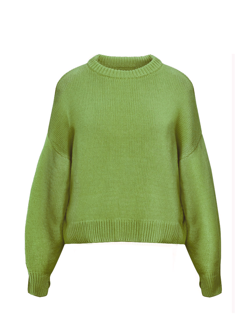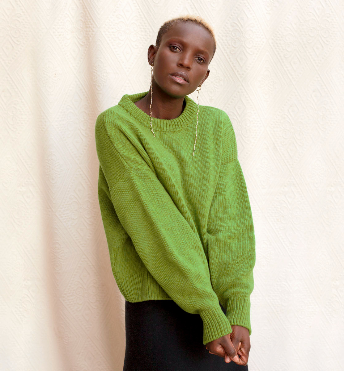 Design à l’esthétique minimaliste, le pull 6 fils se décline dans une jolie palette de couleurs bonne mine. Tricoté ici dans sa version vert coriandre, ce pull aux manches légèrement volumineuses est agrémenté de délicats détails ajourés et d’une fente à chaque poignet.