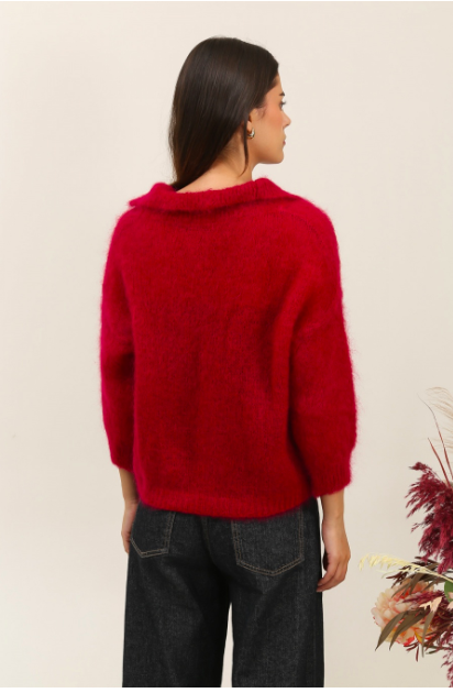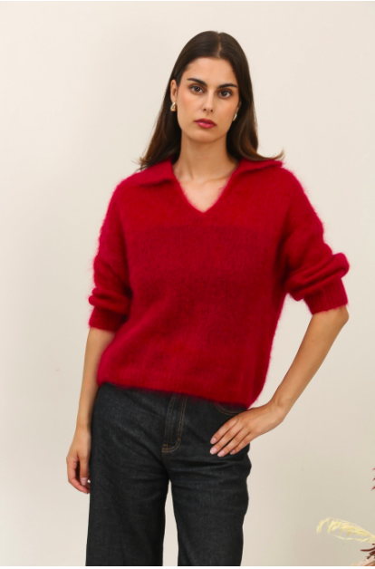 PULL NAIS COL POLO MANCHES 3/4 EN 80 % KID MOHAIR (12 COULEURS)